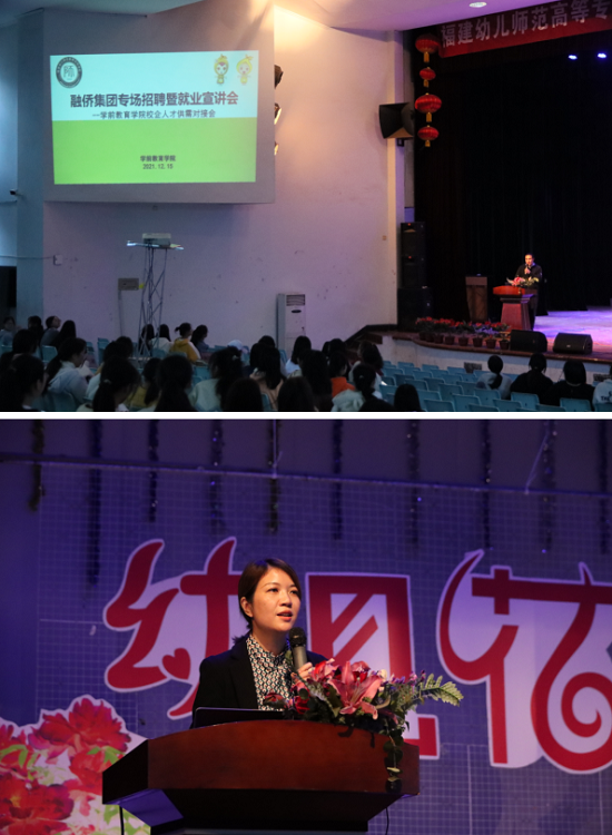 为持续做好疫情背景下毕业生就业工作,实现毕业生更充分更高质量就业,学前教育学院于2021年12月15日下午在白马校区礼堂举办2021年冬季用人单位宣讲会。此次宣讲会邀请了融侨集团下属多个园所,由学前教育学院赖联泓老师主持,学前教育学院全体2022届毕业生聆听了本次大会。
