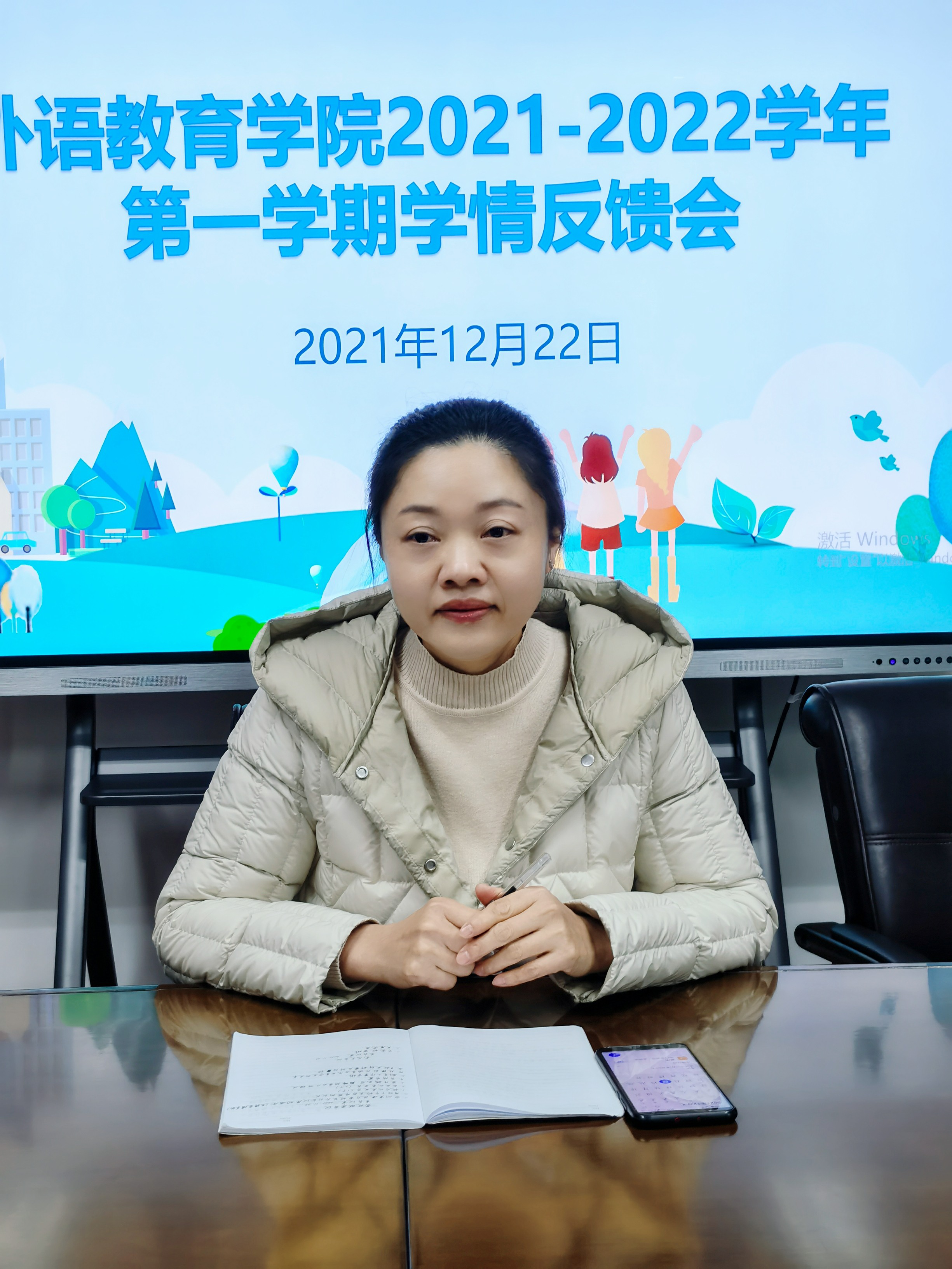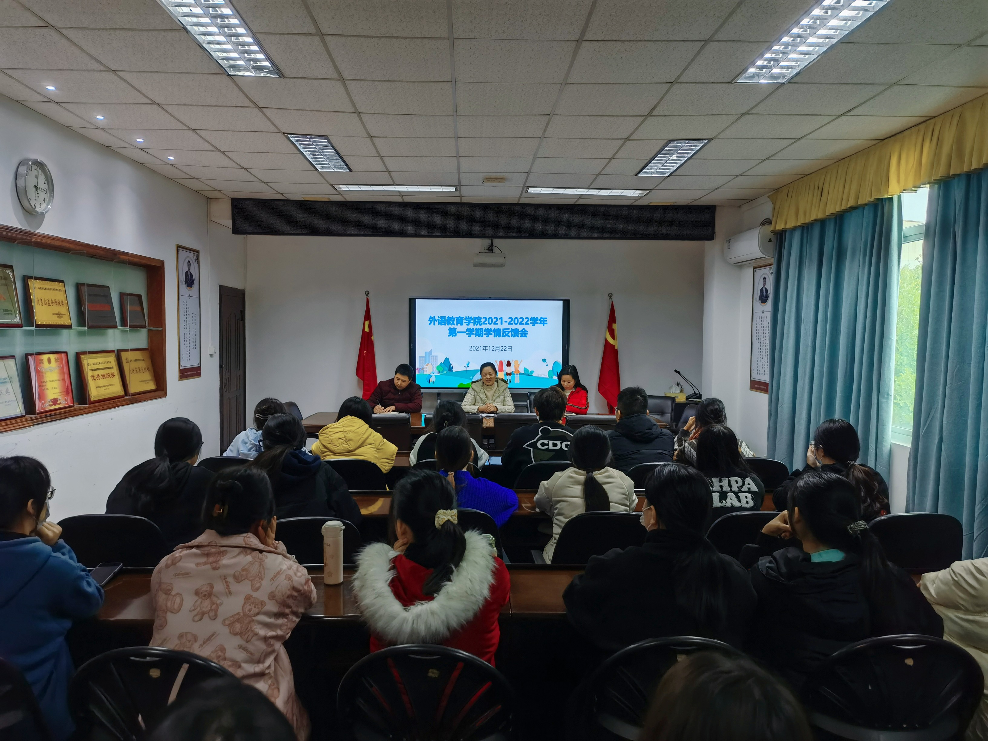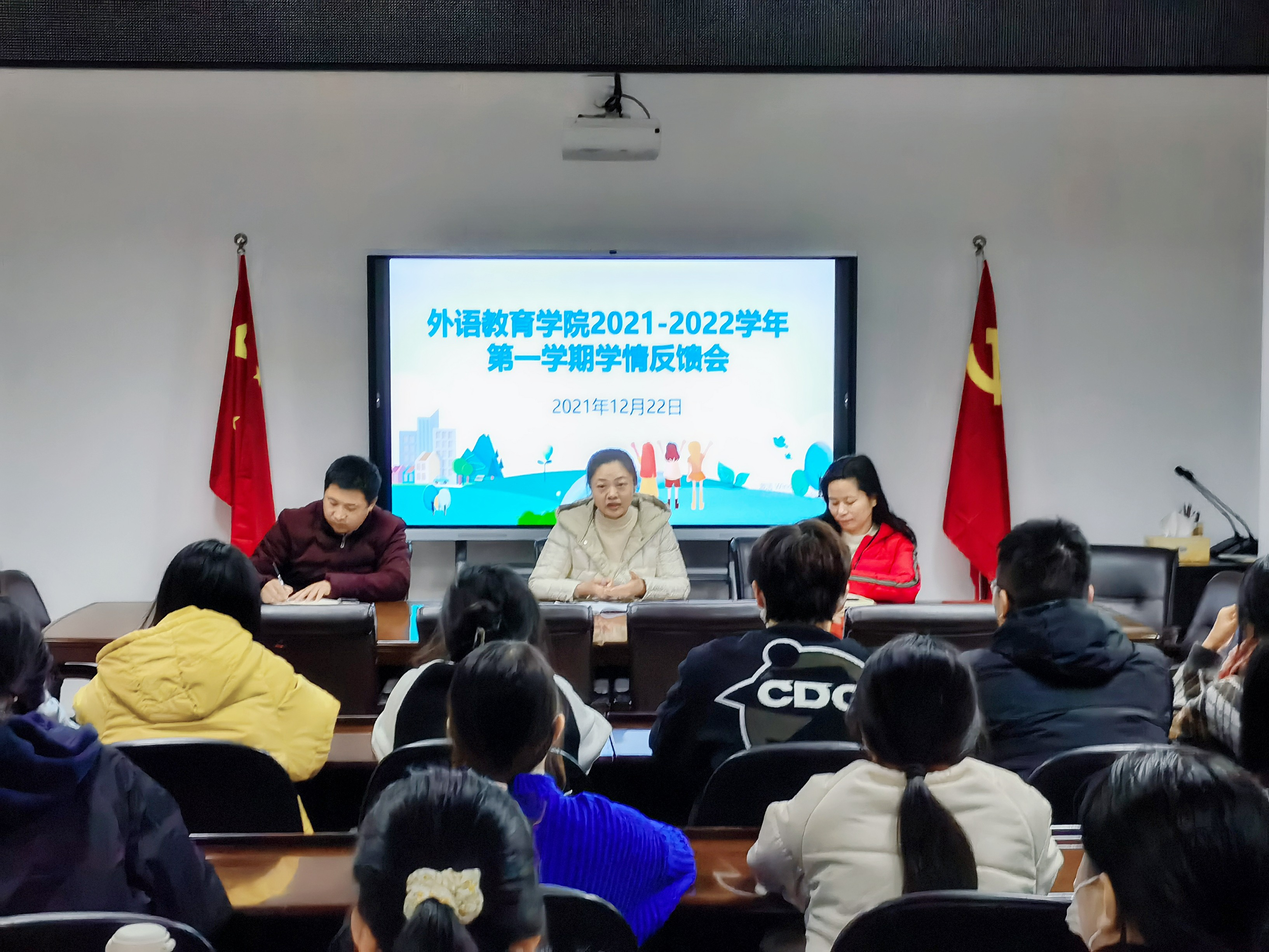 为加强学院教风、学风建设,营造良好的学习氛围,及时反馈和解决教学过程中存在的问题,2021年12月22日下午,外语教育学院在金山校区会议室召开本学期学情反馈会。会议由学院教学秘书毛行堂老师主持,外语教育学院副院长陈文华教授、教师代表、2020级和2021级各班学生代表参加了会议。