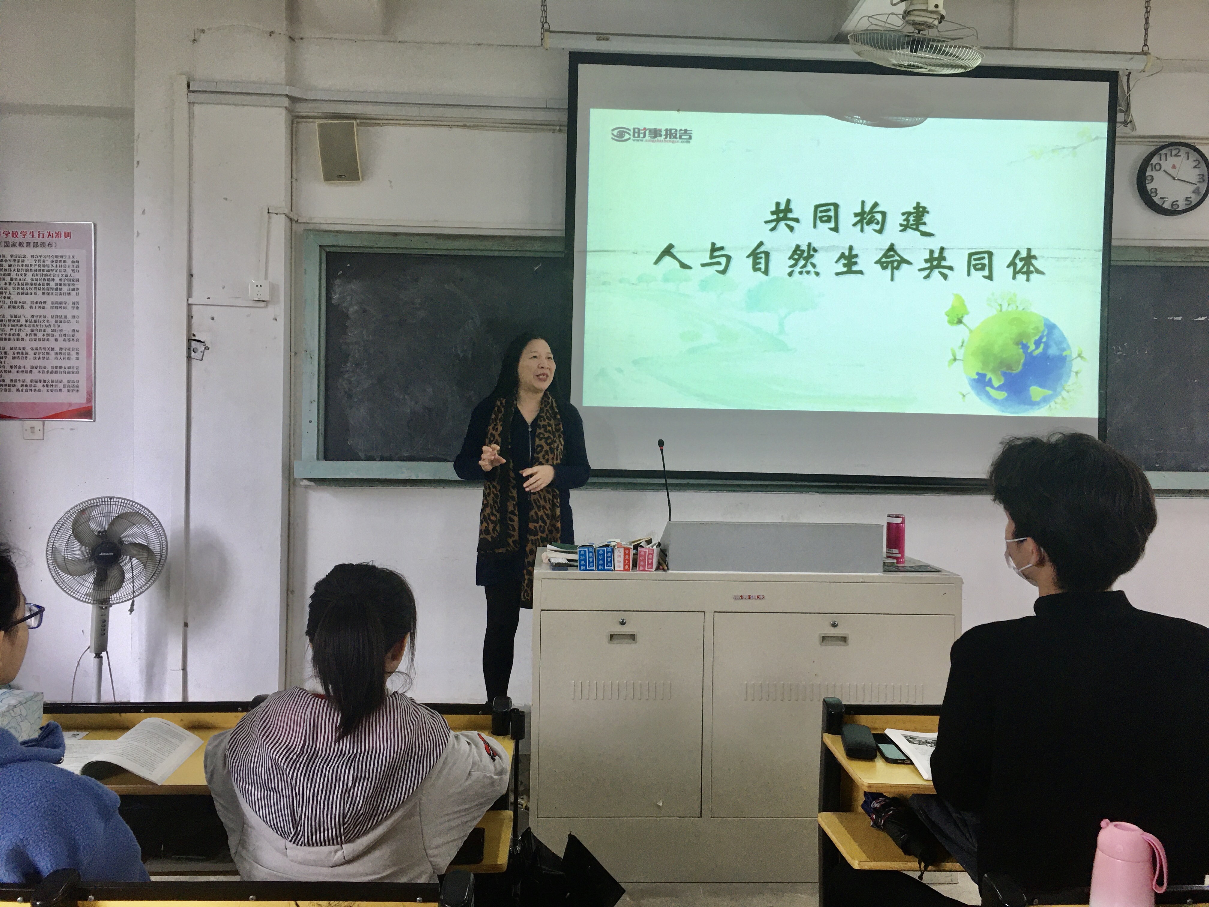 2021年12月22日上午,校党委委员、副校长郑晓生教授在教学楼A405为我校特殊教育专业2111、2112班级学生讲授《形势与政策》课——共同构建人与自然生命共同体。