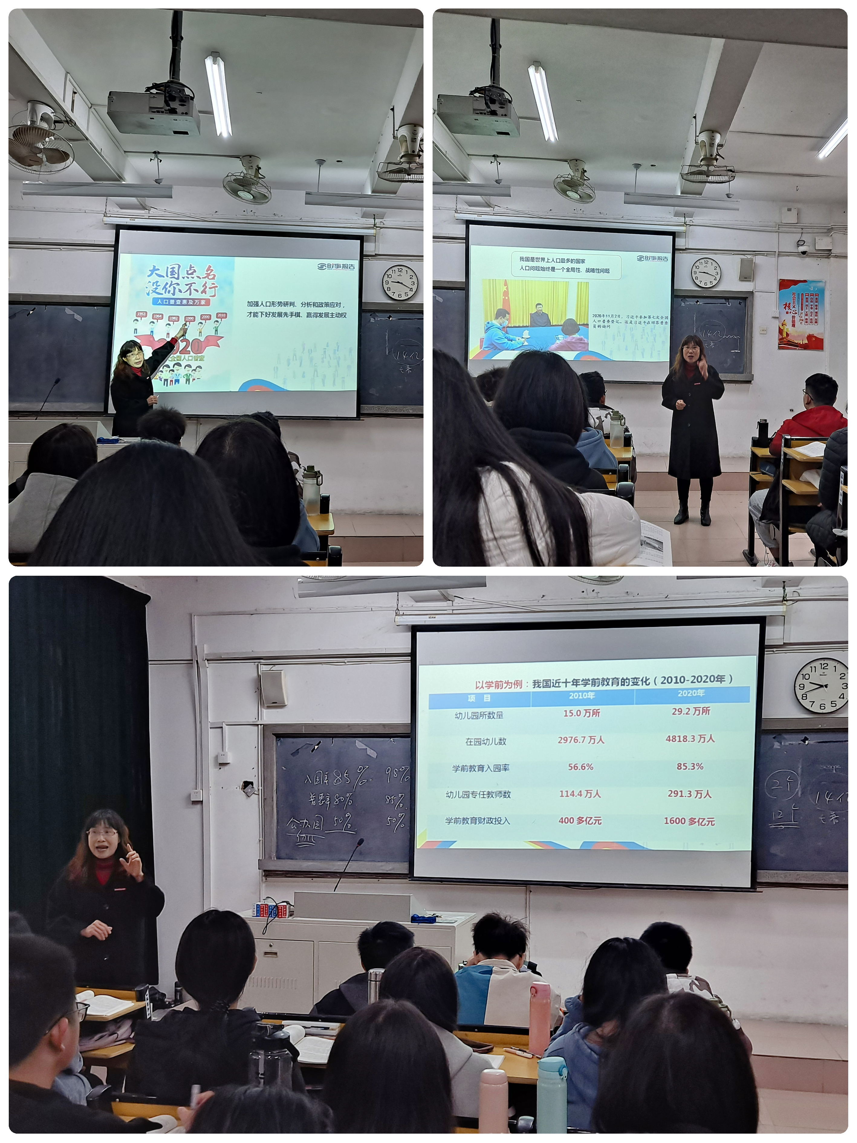 12月24日上午,校党委委员、副校长陈凤玉副教授以《如何认识我国的人口问题》为题,在教学楼A205为学前教育学院2021级学前教育专业21103、21104班学生讲授了一堂精彩的《形势与政策》课。
