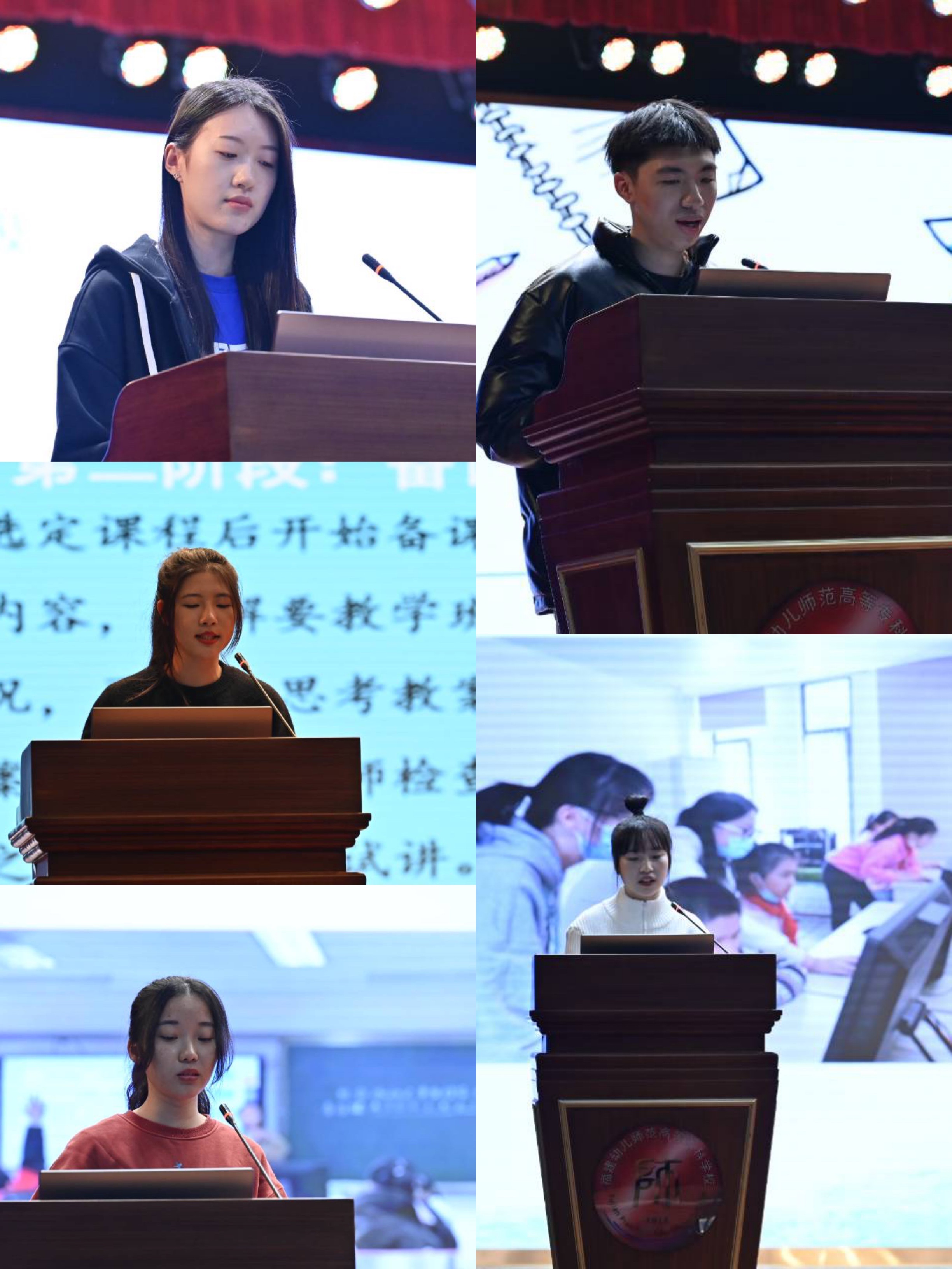 大会第二项议程,现代教育技术1911班7个实习队代表针对本学期的教育实习进行经验分享。七位宣讲人以饱满的激情、生动的语言、丰富的教学案例、实践经验,从不同角度展示了本实习队的风采,让全体师生共同感受做一名教师的责任和担当。