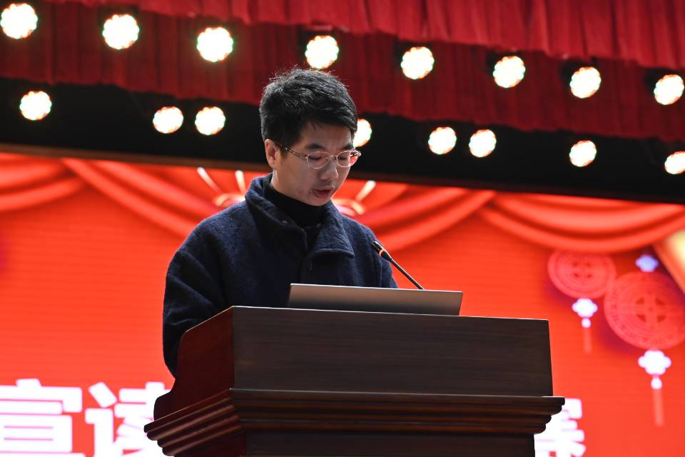 会议伊始,陈宁华院长致开幕词,代表学院向全体教职员工和莘莘学子致以新年的祝福,并表达了衷心的感谢!接着,他回顾了学院过去一年的主要工作和成绩,在全院师生的共同努力下,学院各项工作扎实推动,教育教学改革、学生实习实践、教师队伍建设及学生技能竞赛等各项教育教学改革成绩斐然。新的一年学院全院师生要凝心聚力,在实现高质量、更快速度的发展道路上开启新征程,祝愿学院明天更美好!