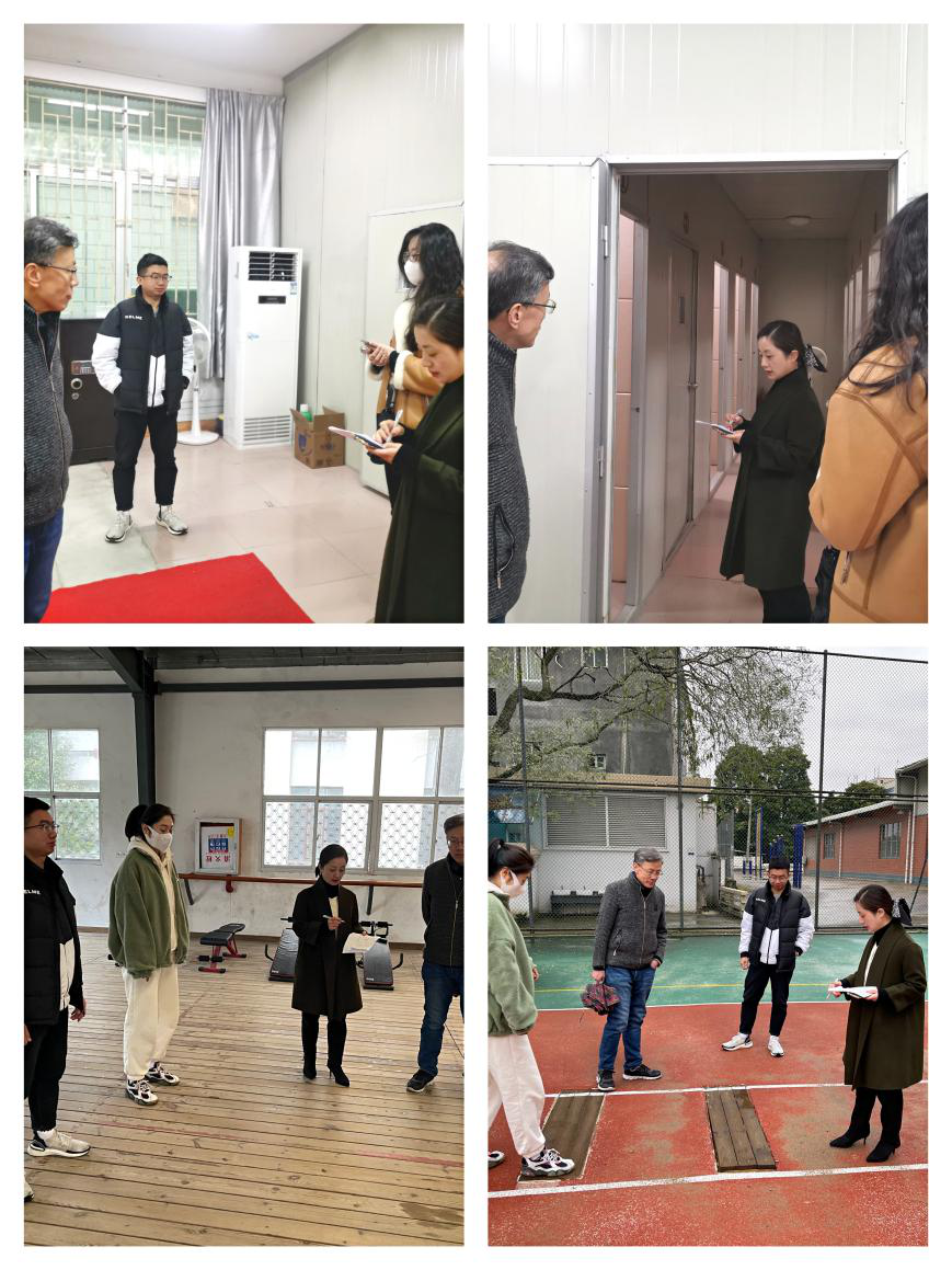 为落实好新学期校园环境与设施的安全隐患排查整治工作,严格树立安全校园发展理念。2022年2月17日下午,通识教育学院认真开展安全隐患排查工作。郑伟副院长、教学秘书及体育、口语教研室老师一行,依次对口语测试室、体操房、篮球场及田径场等重要场所进行了细致的安全排查,对存在的安全隐患及老化损坏问题做好详细记录,及时建立台账,后期持续跟踪及推进整改。通过此次排查,为全体师生安全健康的使用教学器械提供了有效保障。