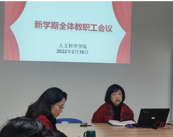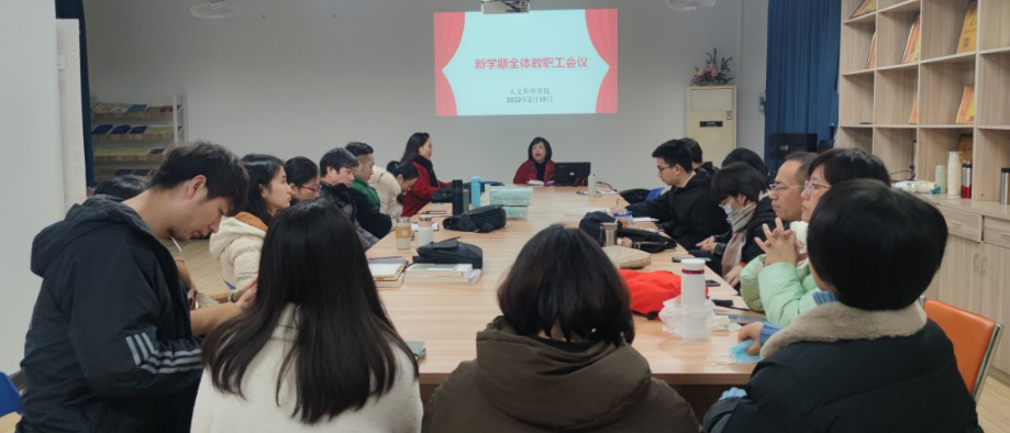 2022年2月18日上午,人文科学学院在B207会议室召开2021-2022学年第二学期期初工作会议。学院全体教师参会,会议由姜平院长主持。