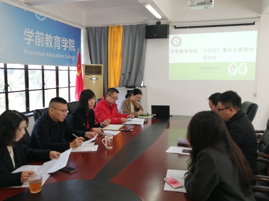 2022年2月28日上午,学前教育学院在406会议室召开"十四五"事业发展规划研讨会,院领导班子和相关人员参会。