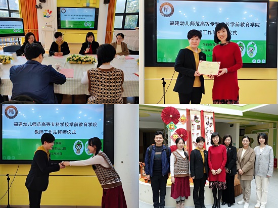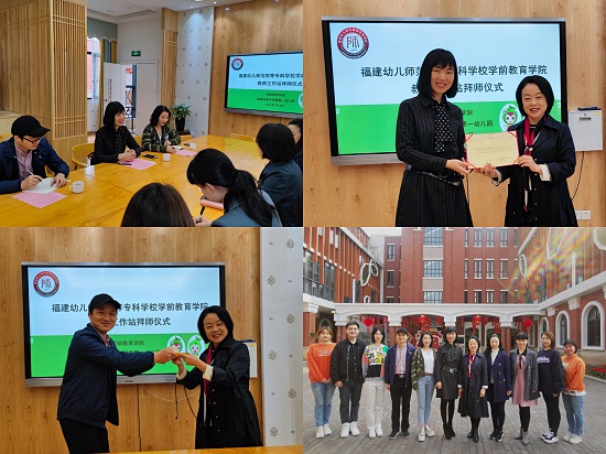 为更好地开展国家级职业教育教师教学创新团队立项建设和吴丽芳教授团队建设工作,我院在前期教师工作站项目取得良好成果的基础上,本学期继续派出中青年教师下教师工作站跟岗实践。2022年2月底至3月初,学前教育学院院长吴丽芳教授携肖英娥、林萍副院长,带领杨滨、叶丽芬、蔡佳佳、彭艺等4位教师和院实训秘书孙晏,分赴我校附属第一、第二幼儿园,省直屏东幼儿园,中国人民解放军联勤保障部队第900医院幼儿园,融侨杰作幼儿园等5所幼儿园联络教师工作站事宜并举行教师工作站拜师仪式。