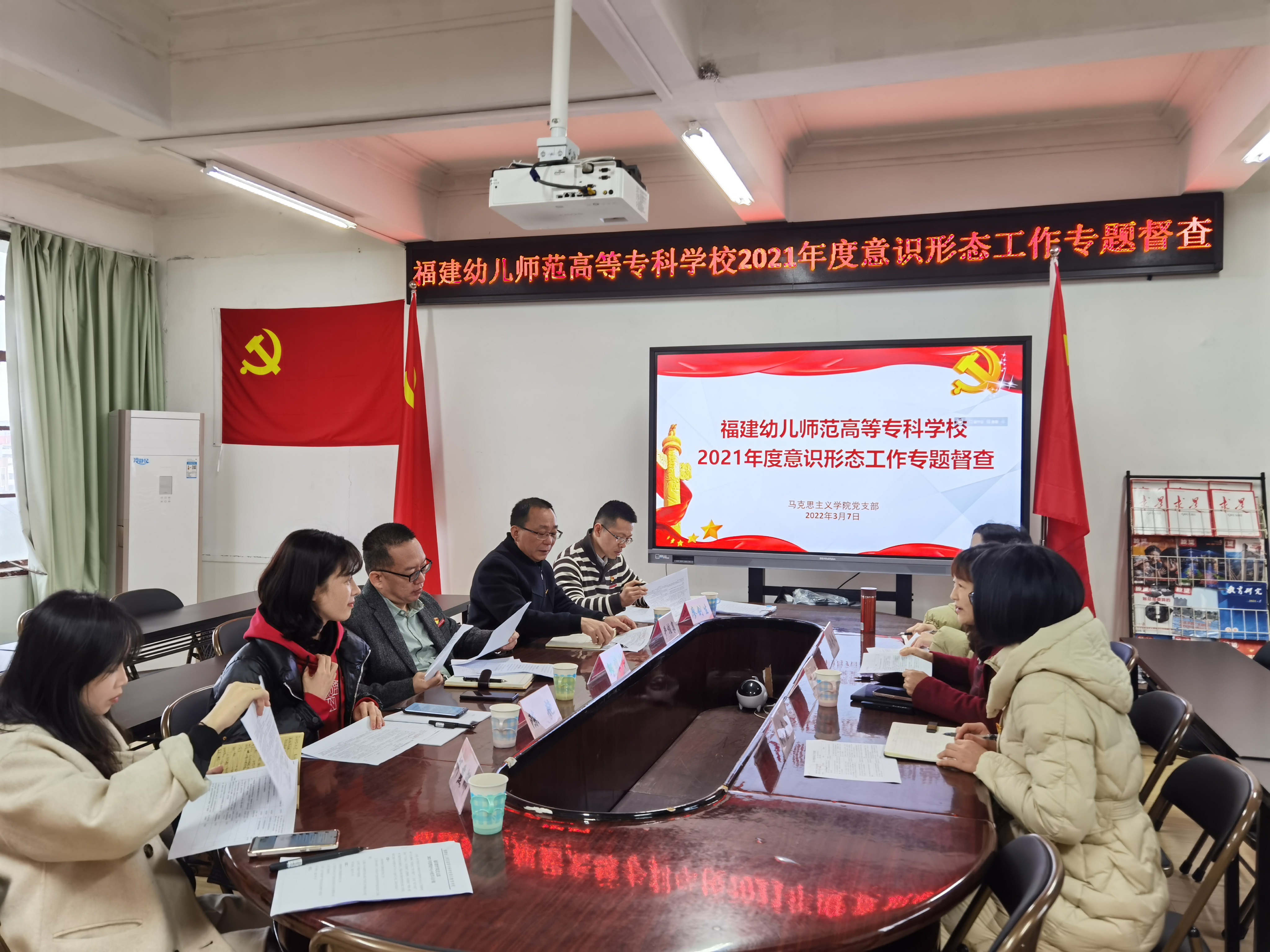 3月7日上午,校党委副书记邹雄伟带队,宣传部部长严桂泉及宣传部全体工作人员一行到马克思主义学院开展意识形态工作专题督查。