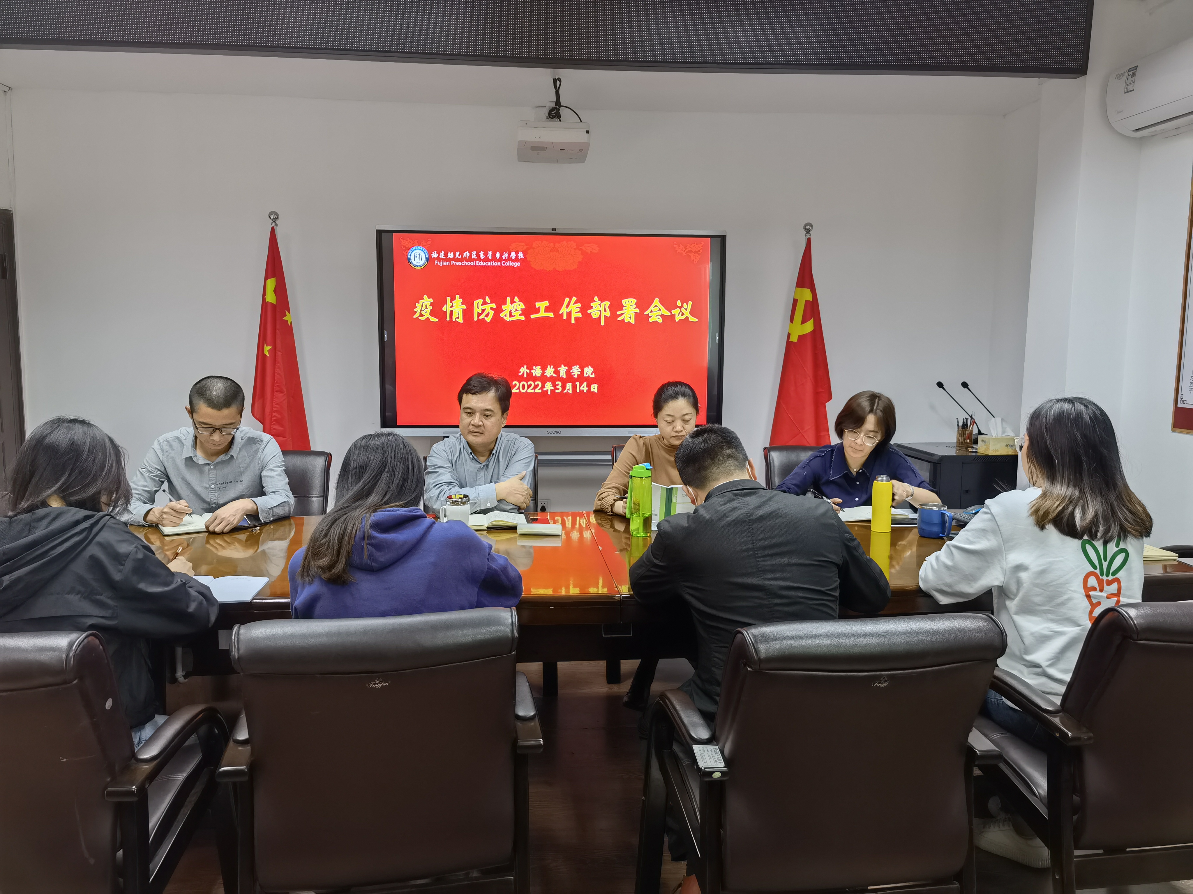 3月14日下午外语教育学院召开疫情防控工作部署会议,林祥昊书记主持会议,学院班子成员、秘书、辅导员参加会议。