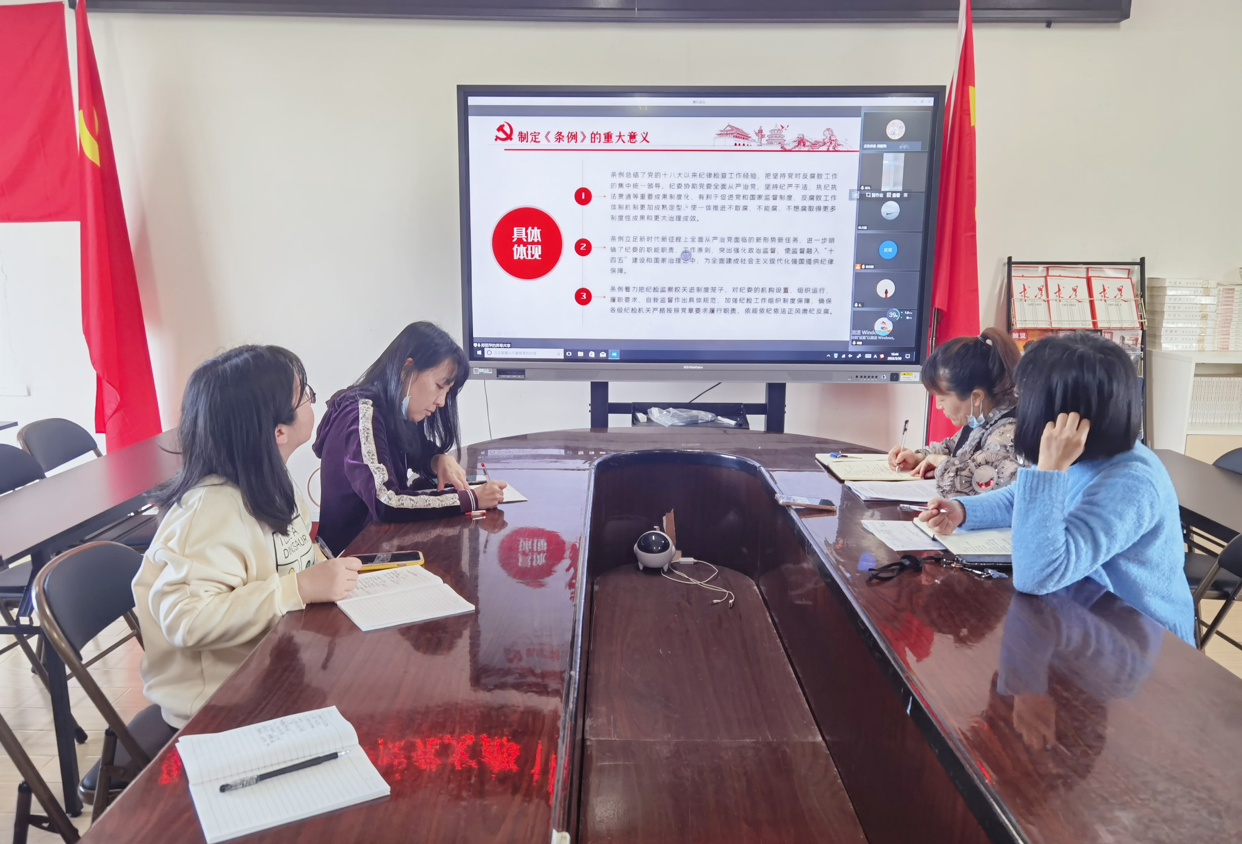 "云端学习不止步、党员教育不停摆",2022年3月30日下午,马院党支部全体党员教师齐聚云端,就《中国共产党纪律检查委员会工作条例》展开集体学习。本次学习由党员教师郑丽萍主讲。