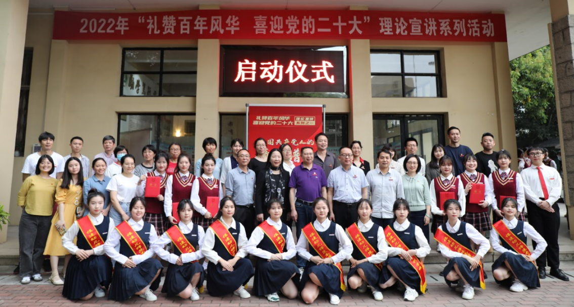 4月13日下午,校党委宣传部、校团委和人文科学学院党总支联合举办2022年"礼赞百年风华 喜迎党的二十大"理论宣讲系列活动启动仪式在教学楼B楼举行,校党委书记鲍仕梅,校党委副书记邹雄伟,校党委委员、副校长郑晓生,校党委组织统战部、宣传部、校团委、人文科学学院全体教师及学生代表参加了启动仪式。启动仪式由校党委宣传部部长严桂泉主持。