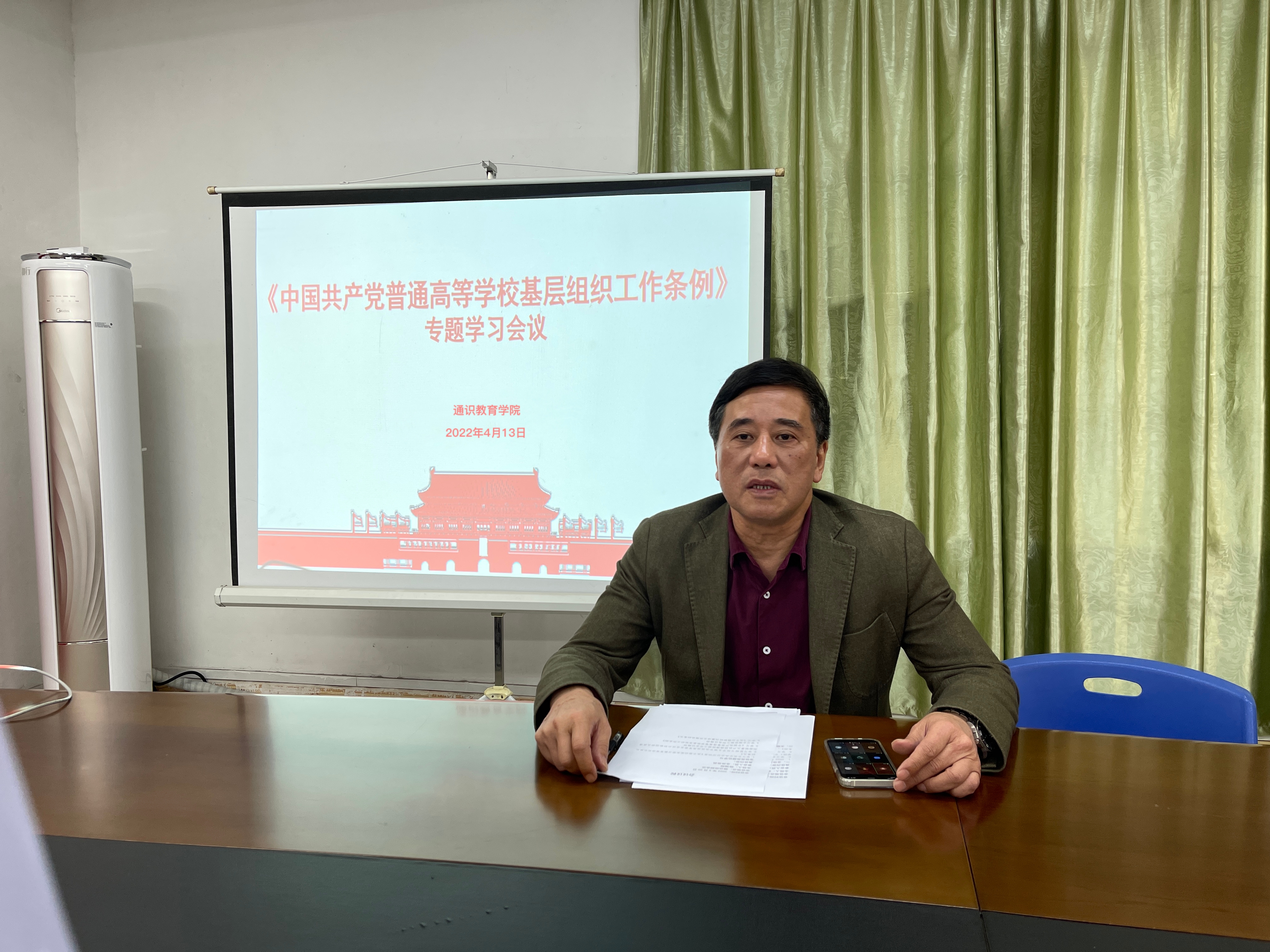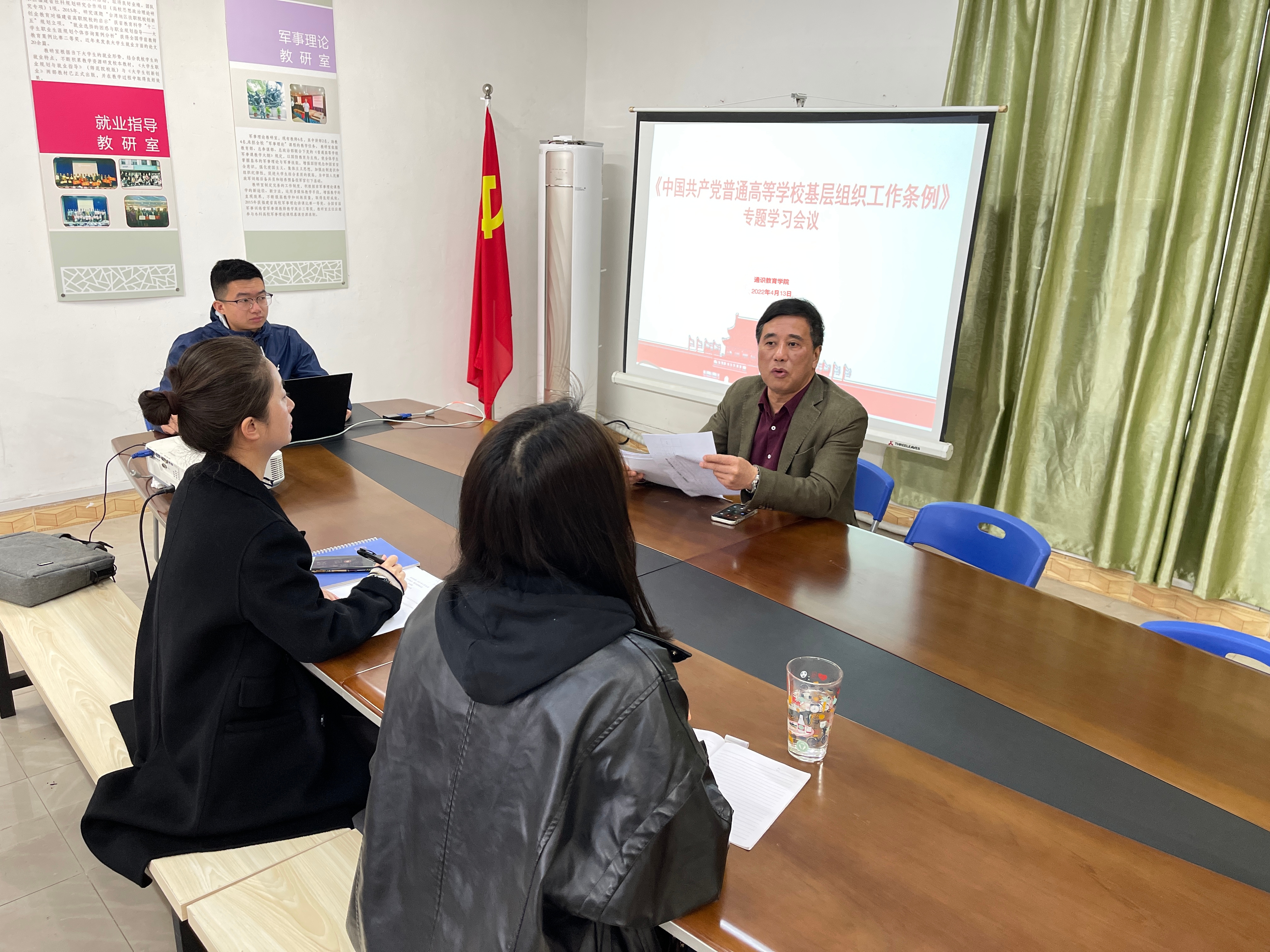4月13日,通识教育学院在系部楼506会议室组织召开《中国共产党普通高等学校基层组织工作条例》专题学习,会议由陈福榕院长主持,全体党员采用线上线下相结合的形式参与。