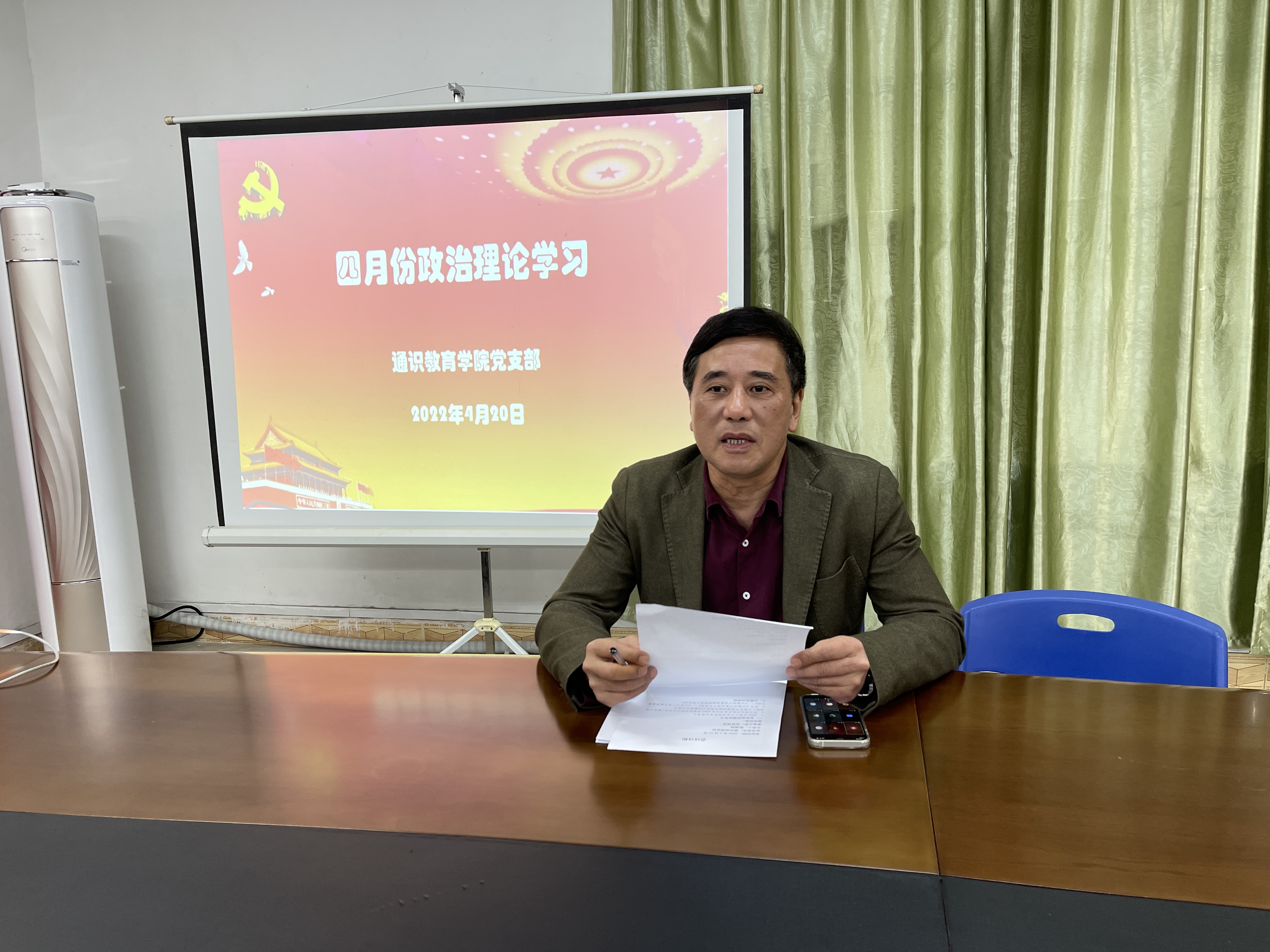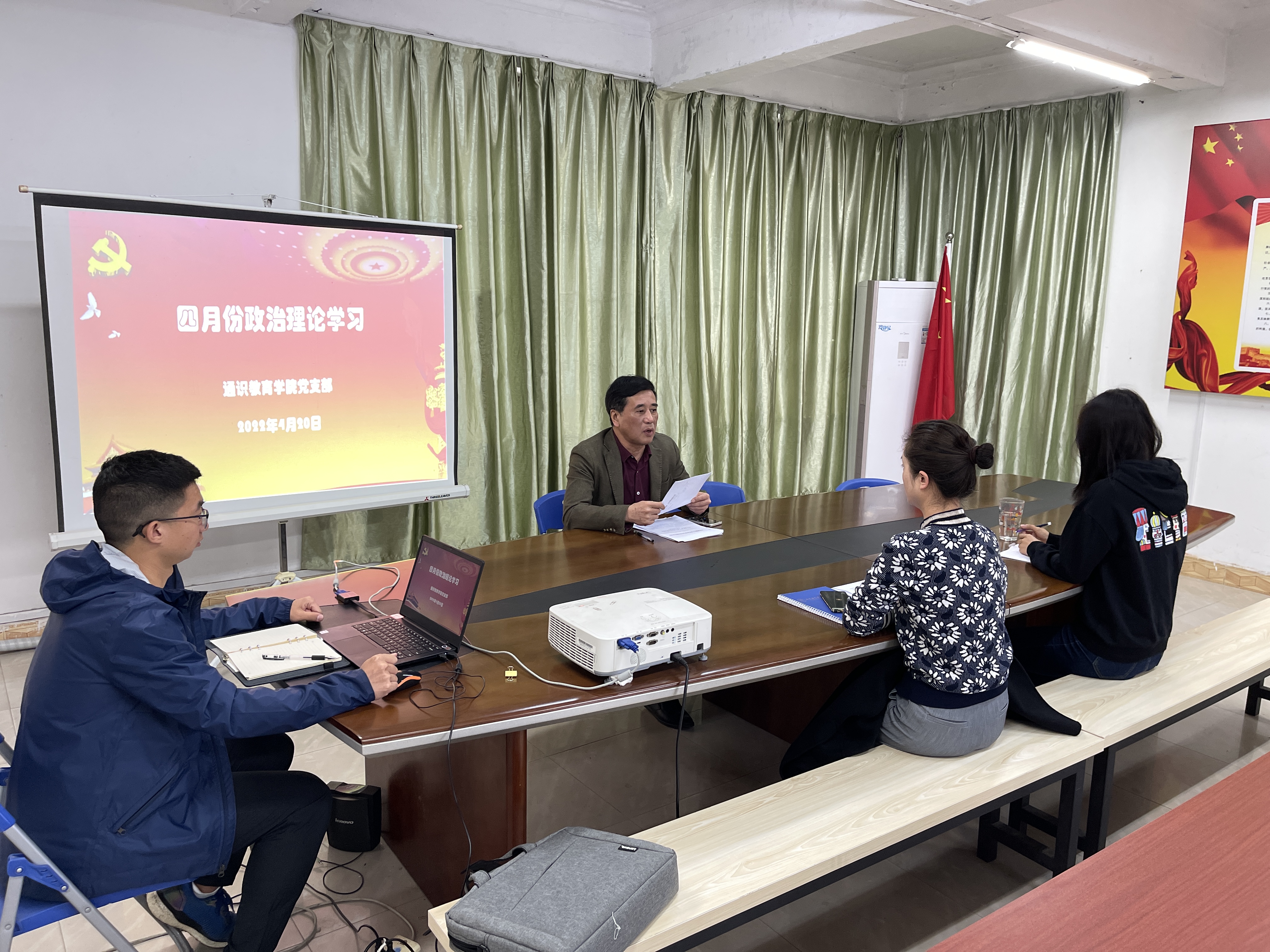 4月20日下午,通识教育学院党支部在506会议室召开4月份党员政治理论学习,会议采用线上与线下同步的形式进行。学院全体党员参加本次学习,会议由陈福榕书记主持。