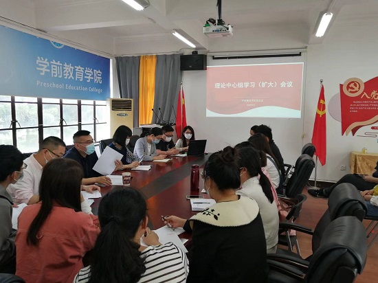 4月22日,学前教育学院在院办406会议室召开理论中心组学习(扩大)会议,会议由学院党总支书记王标主持,学院全体总支委员、辅导员、秘书等参会。