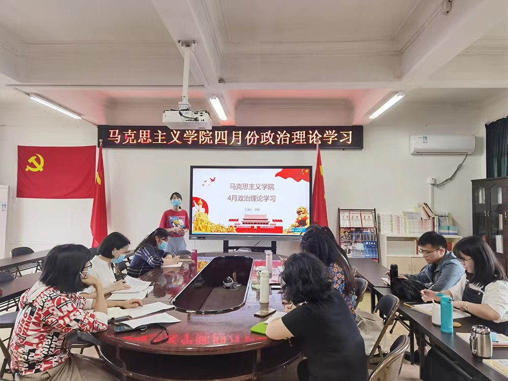 4月27日下午,马院党支部组织全体党员教师在学院会议室开展四月政治理论学习。此次学习由党员教师李缀主讲。