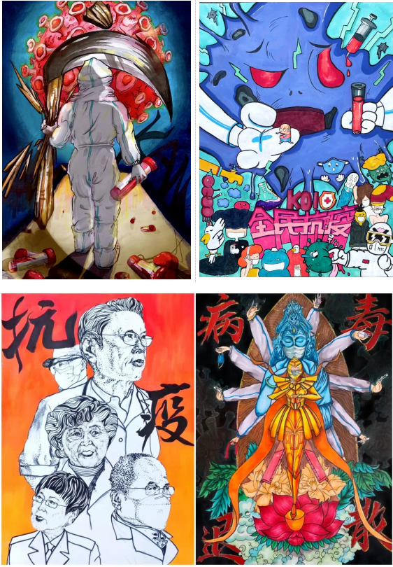 立德树人、德技并修。在抗击新冠肺炎疫情的斗争中,中国精神为世界所瞩目。在统一部署、协调各方,彰显党集中统一领导的伟大"中国精神"和人民至上、生命至上,彰显以人民为中心的伟大"中国精神"的感召下,同学们激情飞扬,他们拿起画笔,运用扎实的专业知识和职业技能,以艺战疫,通过海报设计作品宣传抗疫知识,记录可歌可泣的战疫故事,致敬奋战在疫情防控第一线的"战士",凝聚起众志成城抗击疫情的强大精神力量,展现出时代青年对党和国家的热爱和社会责任担当。