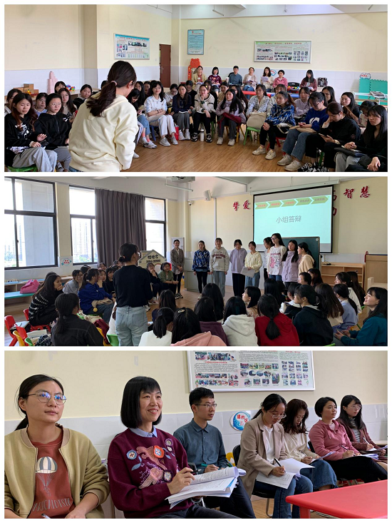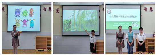 本学期叶丽芬老师于我校附属二园开展教师工作站的任务,前阶段叶丽芬老师携手一线教师共同推进课堂教学改革,邀请了附属二园的刘焱、陈霞两位教学能手共进课堂展示互动,分享了幼儿园美术教育的典型案例,帮助学生更好了解真实岗位的知识与技能,再与两位教师深入沟通将幼儿园工作岗位中典型的幼儿园美术教育知识与技能转为课堂小组项目实训的任务。此次公开课在上次活动的推进下,以任务导航、小组项目实训的方式请学生现场作了模拟教学,利用信息技术课堂派平台,更好助力学生多向学习、多元评价,从而提升了学生课堂学习的效率,真正实现了专业认证中"学生中心""产出导向""持续改进"的核心理念。