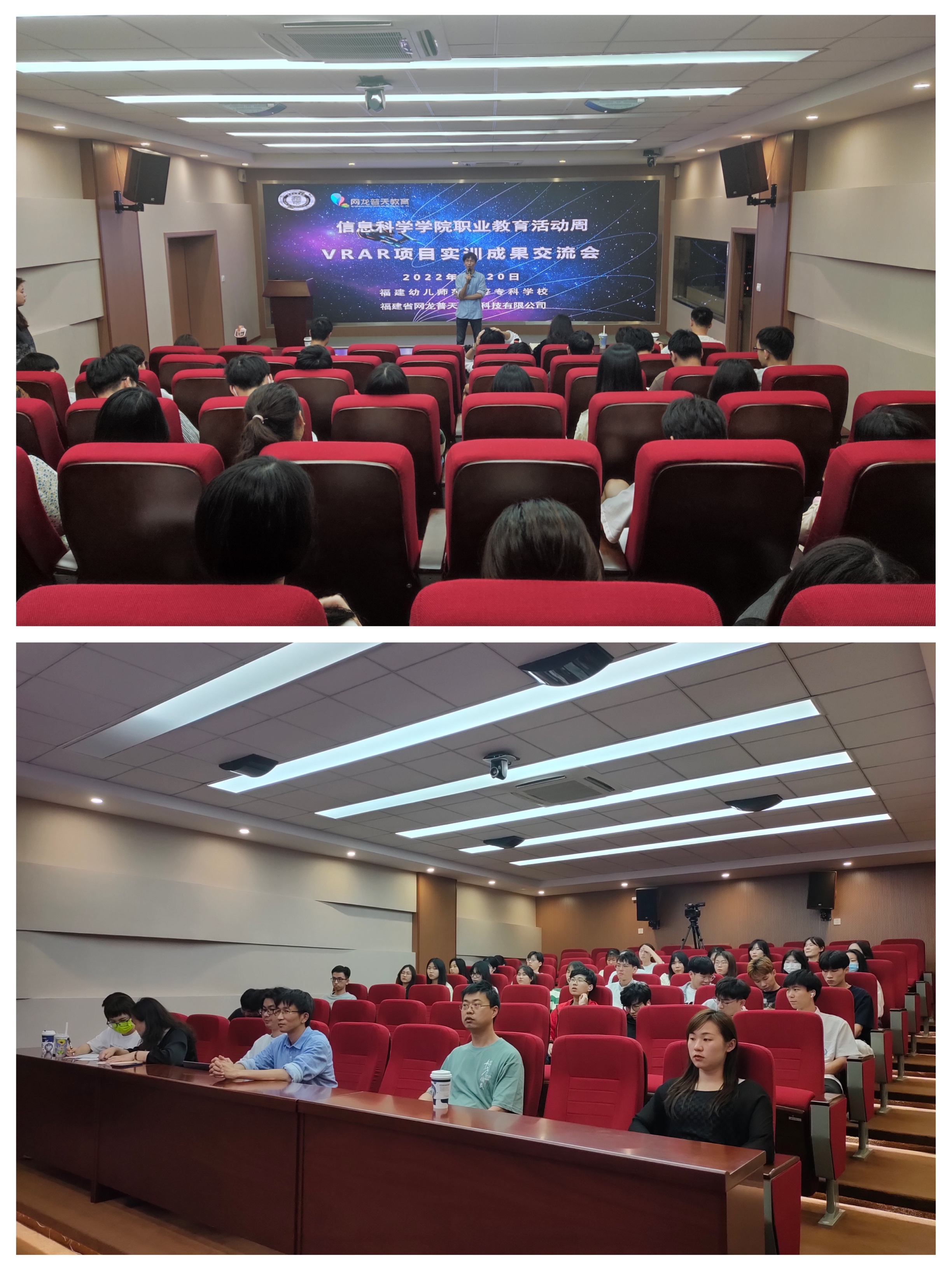 2022年5月20日下午,信息科学学院在综合楼VR演播厅开展了"VRAR项目实训成果交流会"。实践教研室主任卓皓老师、数字媒体技术教研室主任黄键老师,专业教师朱必熙、董湛、刘圆圆、张煜、黄玮,学院学生团队林承杰、何晨阳老师以及学院的40多位同学参加了本次活动。