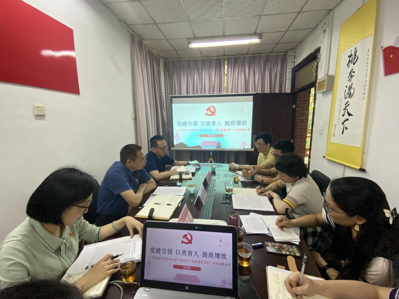 6月2 日上午,校党委书记鲍仕梅、校党委副书记邹雄伟及校组织统战部相关人员一行来到艺术教育学院开展"样板支部"创建工作调研指导,学院党总支姜琪书记主持会议,全体党政班子参会。会上由艺术教育学院副院长、教工第一党支部书记颜艳,作主题为"党建引领 以美育人 提质增效"的创建工作汇报。