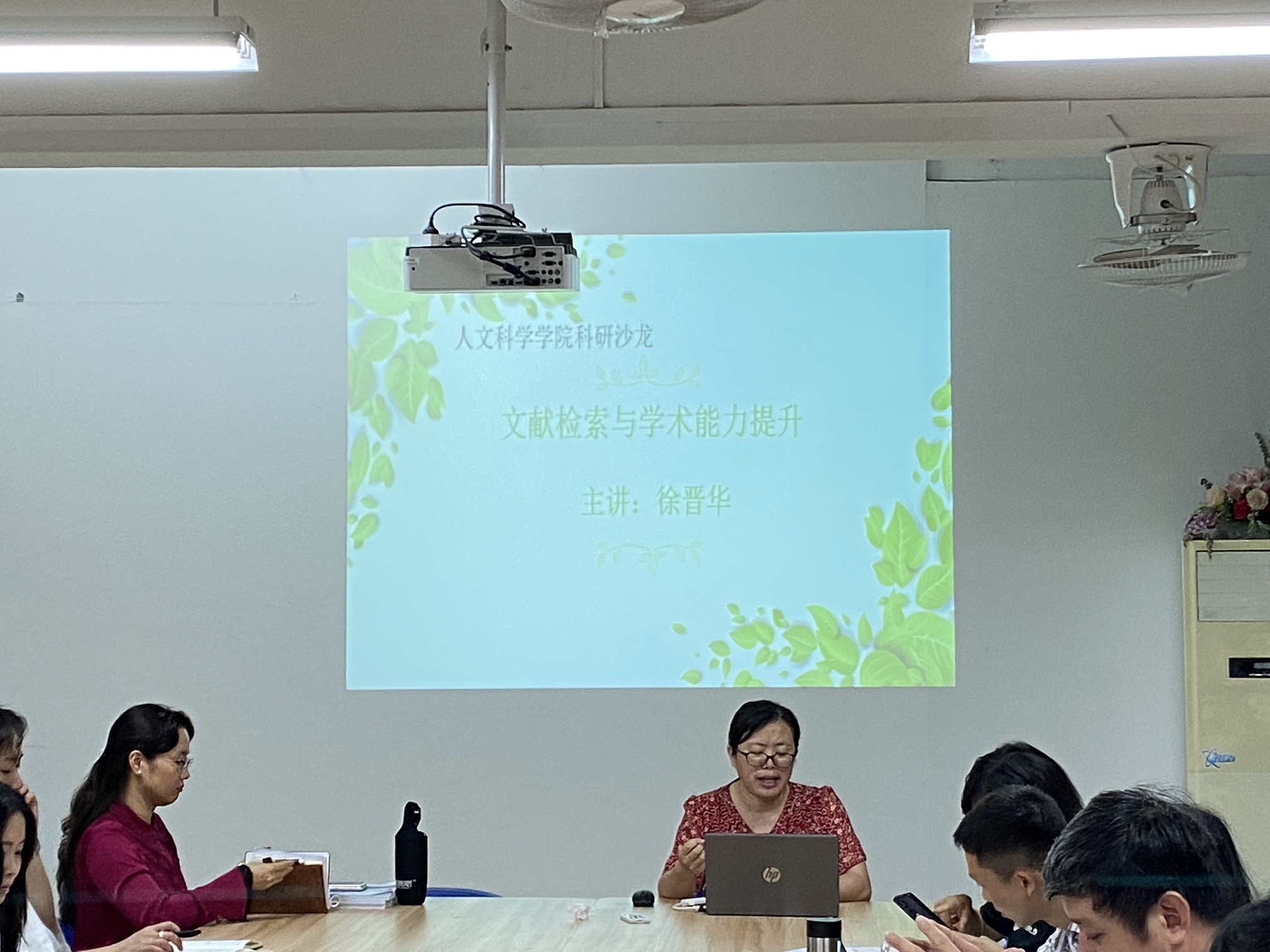 为提高全院教师的科研能力和学术水平,搭建教师共同学习、分享交流的平台,2022年6月8日下午人文科学学院在B207举办"学术文献检索与学术能力提升"科研沙龙,活动由林榕副院长主持,学院全体教师参加。