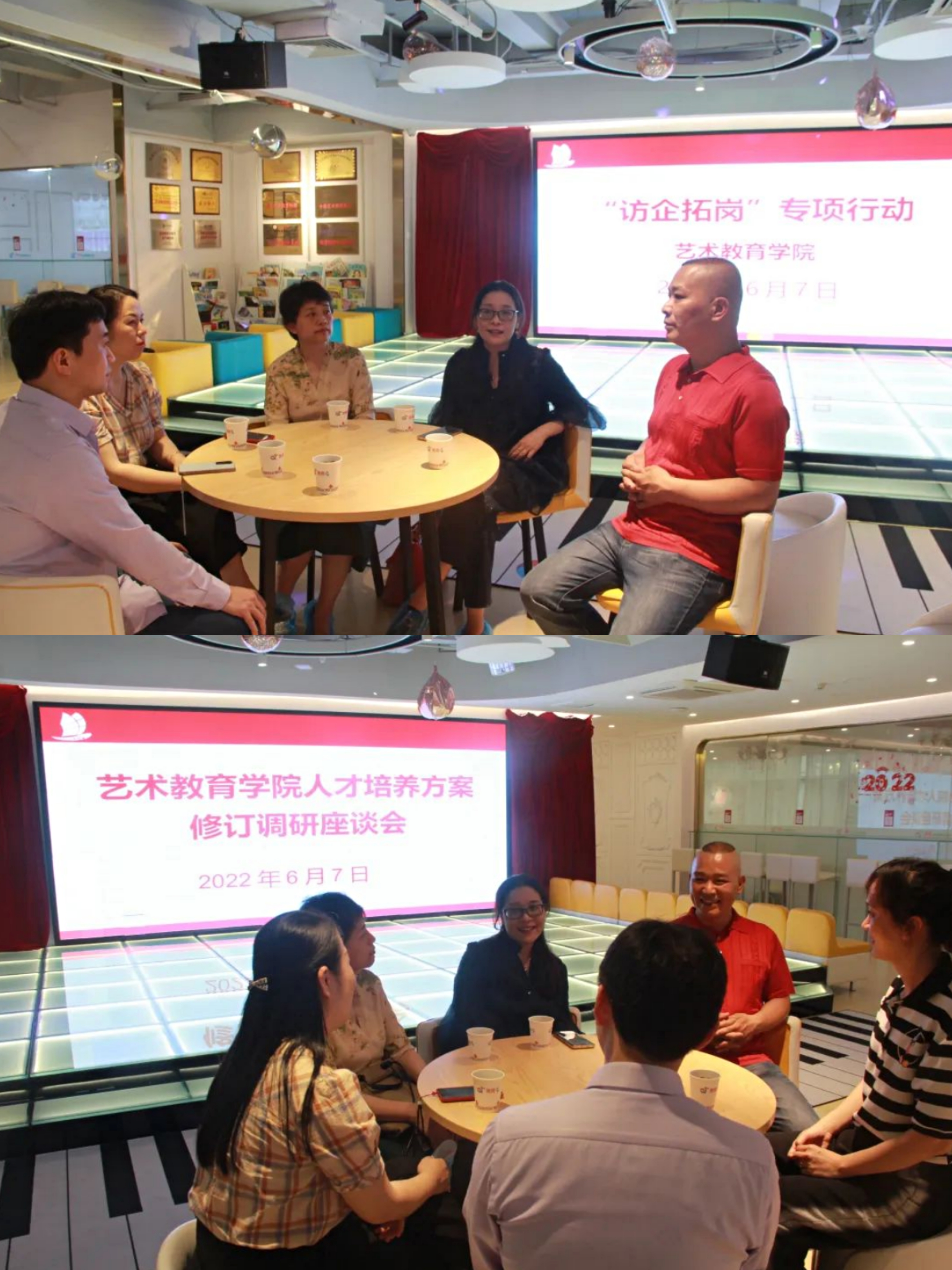 为深入贯彻落实党中央、国务院关于"稳就业、促就业"决策部署,按照学校的工作部署,艺术教育学院党政领导在校领导班子成员带头示范作用下,于2022年6月7日分别到福州鼓楼美育艺术培训中心和哈鼓邦流行音乐中心开展访企拓岗促就业专项活动。