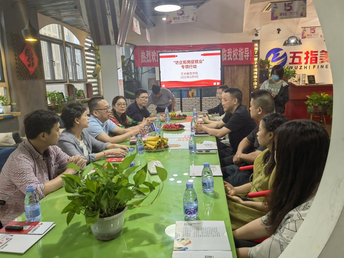 为深化校企合作,促进毕业生更好更高质量就业,6月9日,在校党委邹雄伟副书记的带领下,艺术教育学院前往福州五指文化传播有限公司开展"访企拓岗促就业"专项行动。校创新创业与实训中心周海林主任、学院党政领导班子等共同参加了活动。