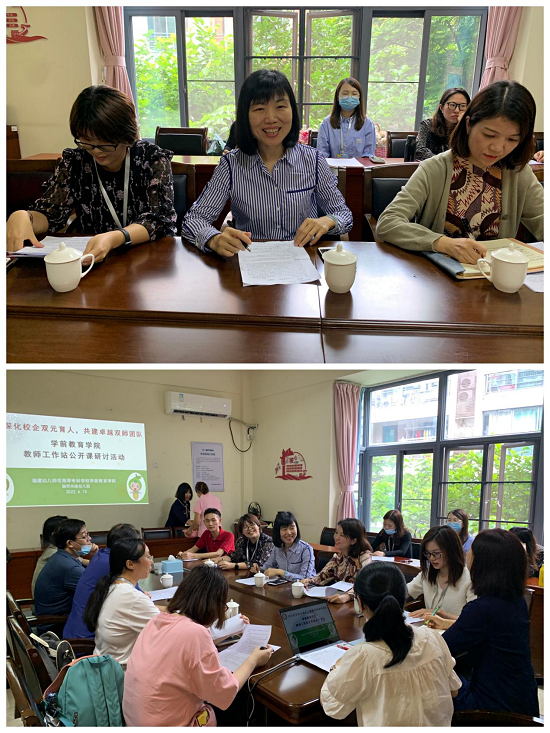 借助教师工作站的平台,我院教师于幼儿园开展公开课教学,与幼儿零距离互动,更好了解真实岗位中幼儿园美术教育的知识与技能,有效反哺高校课堂教学。高校教师与幼儿园教师跨界共同研讨的方式,助推了幼儿园园本教研水平进一步提升,同时也提高了我校"双师型"教师队伍素质,有效实现校企双向双融通,深化双元育人格局。