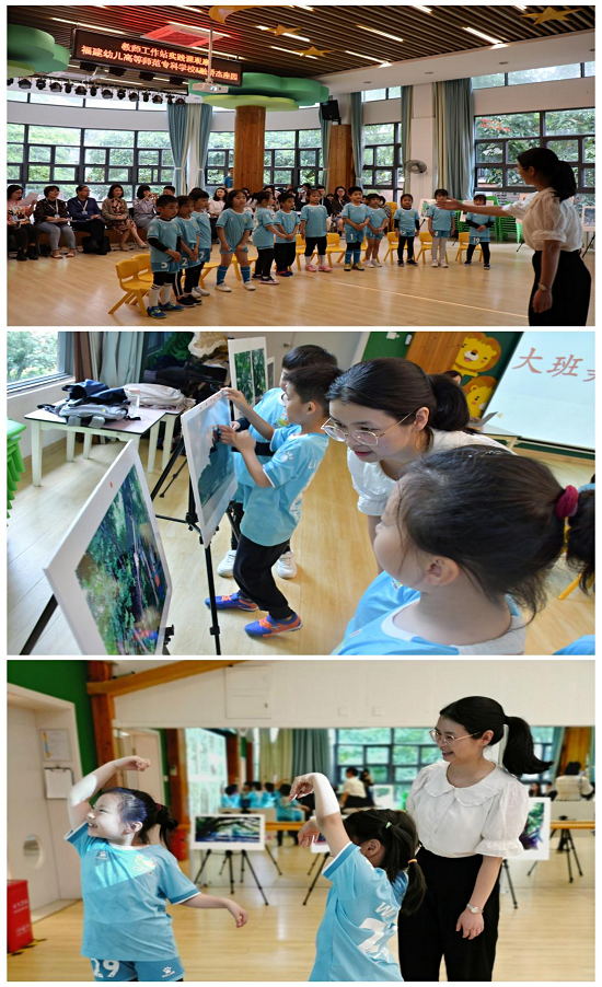 公开课上,叶丽芬老师围绕大班美术欣赏活动榕树主题,先请幼儿自由欣赏生活中的榕树摄影作品并请投票选出最喜欢的榕树作品,基于幼儿的兴趣再通过聚焦欣赏、组图欣赏、名画欣赏等多元的方式层层推进美术欣赏活动,最后请幼儿以水墨画的方式大胆的表达自己的审美感受。整个活动在以劳育美、以美育人中温润了幼儿的心灵,注重时代新人审美素养的培育。