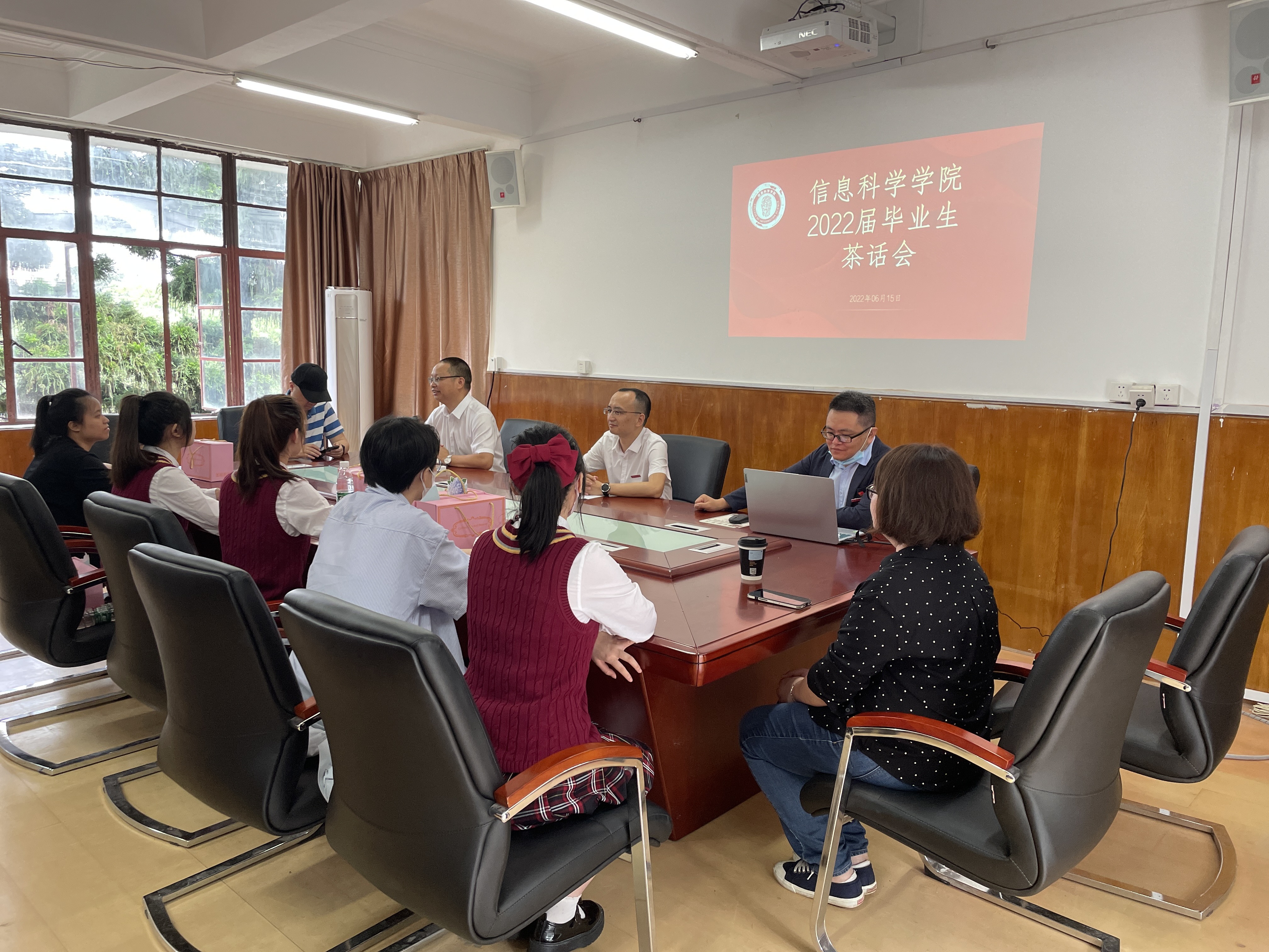 6月15日上午,信息科学学院在学院会议室举行了2022届毕业生离校座谈会及毕业生党员离校教育。学院领导、教师代表、2022届毕业生代表、毕业生党员参加座谈会,林承杰老师主持。