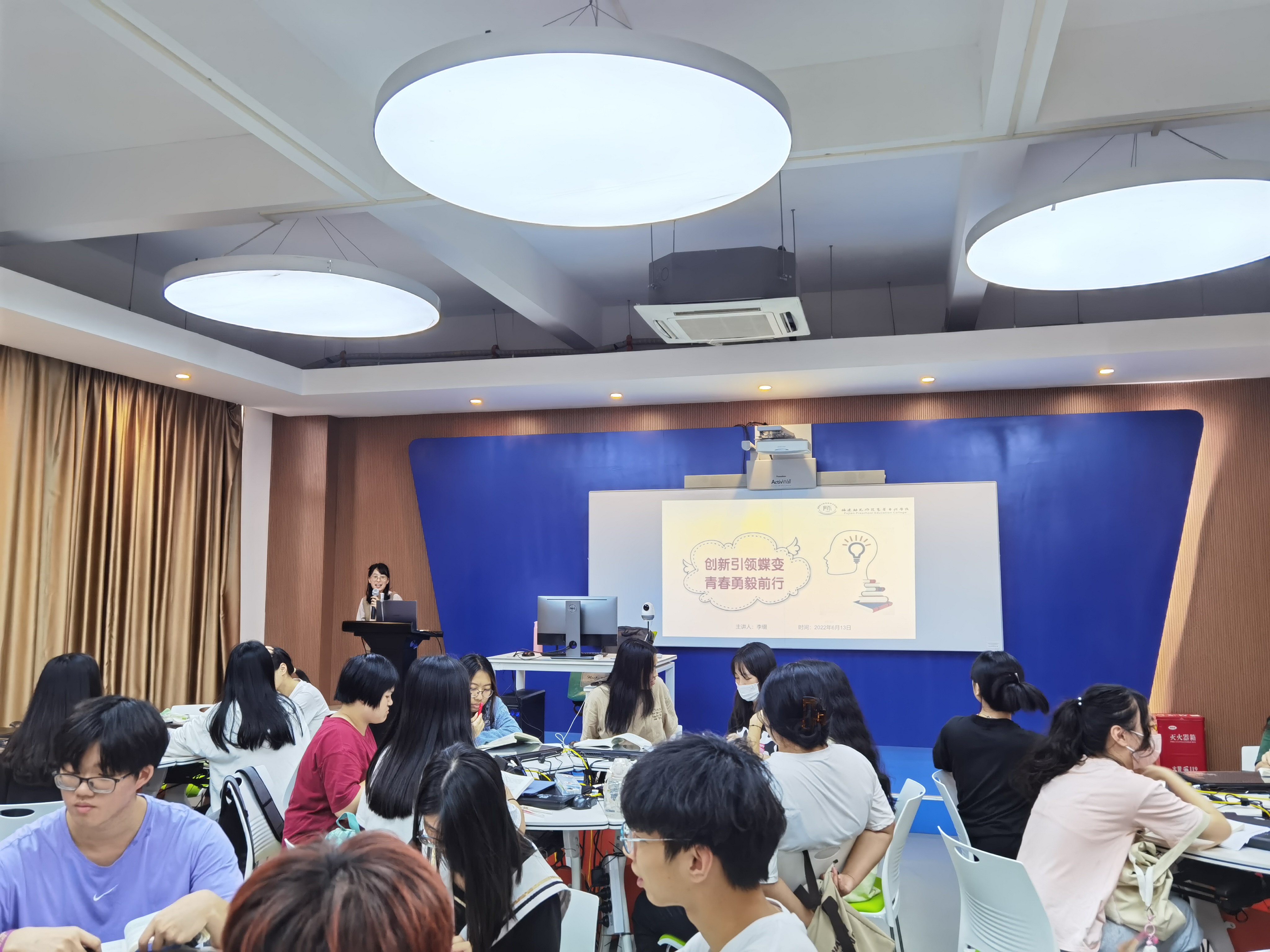 2022年6月14日下午,校党委副书记邹雄伟、副校长陈凤玉走进思政课堂,听取了马克思主义学院教师李缀2021级现代教育专业2111班同学们讲授的《思想道德与法治》课程之"创新引领蝶变 青春勇毅前行"公开课。马克思主义学院教师一同前往听课。