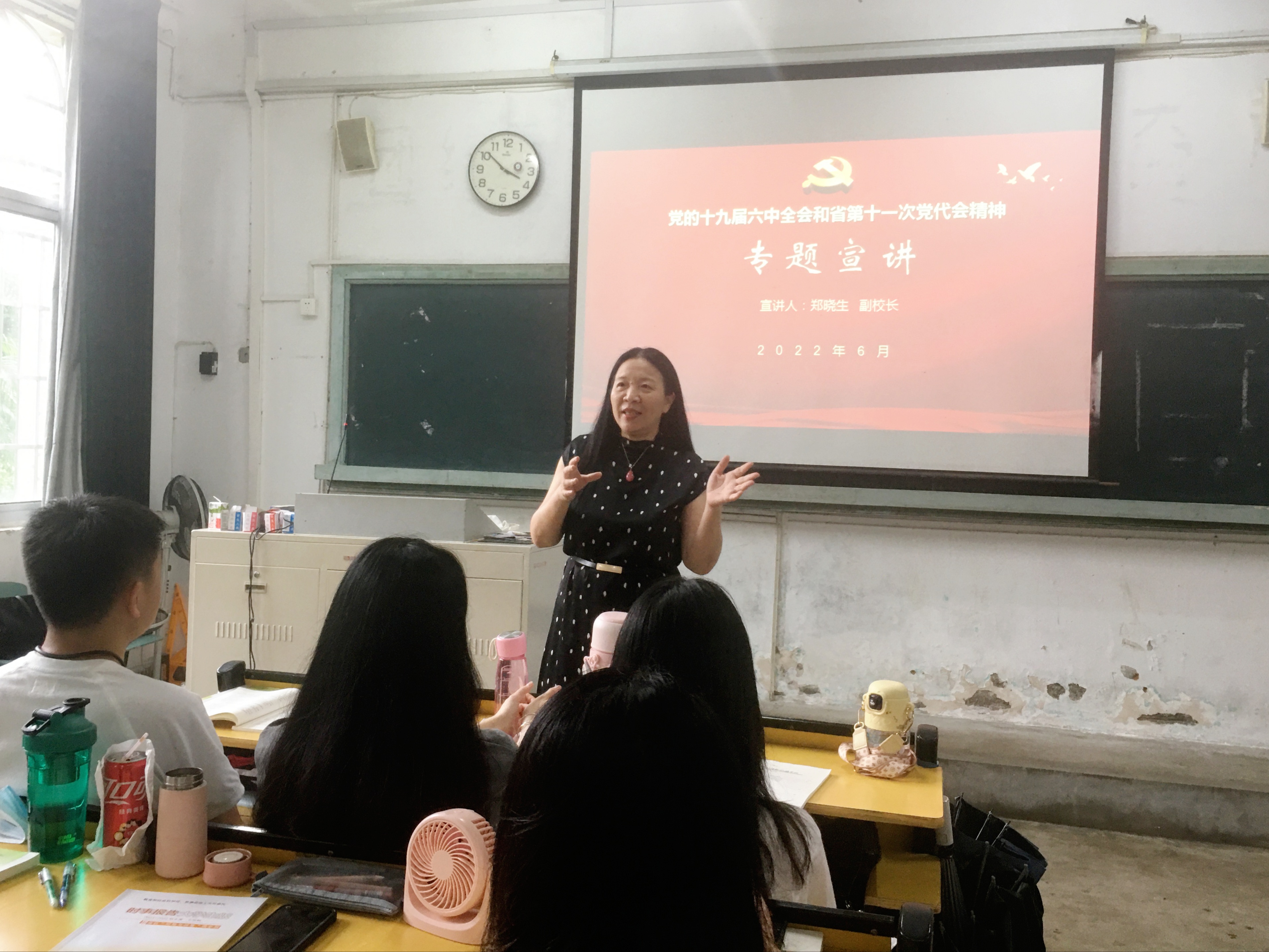 2022年6月17日下午,校党委委员、副校长郑晓生教授在教学楼A103教室,为我校人文科学学院小学教育专业2111班、2112班学生上了一堂精彩的"形势与政策"课,宣讲党的十九届六中全会精神。