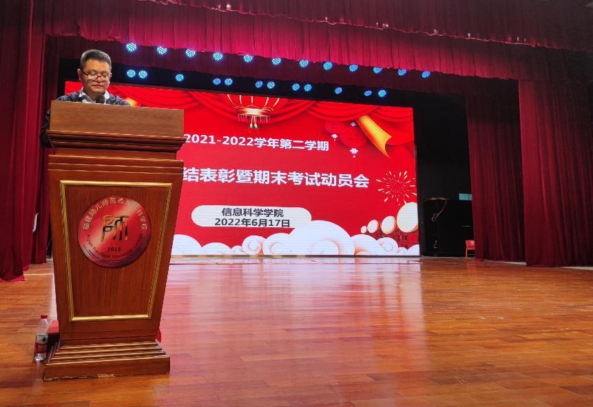 本学期即将结束,为进一步加强学院的学风建设,调动同学们学习备考的主动性和积极性,6月17日晚信息科学学院全体师生在仓山校区礼堂召开学期总结表彰暨期末考试动员大会,大会由林承杰老师主持。