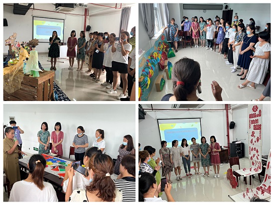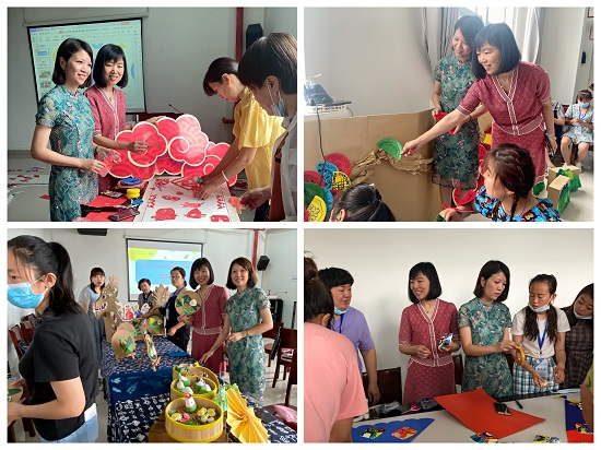6月19日,学前教育学院院长吴丽芳教授应邀为培训学员作题为《传统文化背景下的幼儿园环境创设》的专题讲座,吴丽芳教授指出,在多元文化背景下的网络时代,美术的视觉性,有助于学前儿童获得生动的文化体验与形象的文化记忆。通过走进本土文化现场,体验传统文化魅力;重塑校园审美环境,彰显传统文化底色;依托亲子主题活动,探寻传统文化意蕴;深化美育实践活动,创新传统文化之美等4种形式,开展传统文化背景下的幼儿园环境创设,为学前儿童提供在本土文化与多元文化之间、在传统文化与现代文明之间展开对话与交流的时间和空间,使学前儿童在系列的、多元的艺术实践过程中深入了解本土文化、体验传统之美、创造现代之美,实现中华优秀传统文化的活态传承和创新发展。随后,吴丽芳教授携融侨杰作幼儿园李靖园长一起带领学员开展"根植传统文化的幼儿园环境创设工作坊"的实操活动,通过分享相关的典型案例,引导学员结合自身教育实践,分成4个小组合作开展工作坊实操。吴丽芳教授与李靖园长带来学前儿童的手工作品,引导学员如何在幼儿园指导幼儿基于生活、立足本土文化创作作品,并带领幼儿运用自己的作品开展幼儿园环境创设。最后,4个小组派代表交流分享各自关于飞龙在天、京剧脸谱、端午安康、老鼠嫁女等4个主题的幼儿园环创实操体会和反思,在此基础上吴丽芳教授与李靖园长对工作坊进行点评,帮助学员总结经验,深化美育实践活动。