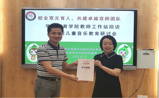 为进一步推进教学、科研、实践紧密结合,集聚一线幼教培养要素与资源,持续深化校园共育,强化教师教育队伍建设,协同培养卓越幼教师资,学前教育学院依托教师工作站的项目平台,在本学期初遴选4位优秀教师,分别在福建幼儿师范高等专科学校附属第一第二幼儿园、省直屏东幼儿园、九OO医院幼儿园、融侨杰作幼儿园5个教育实践基地园,完成定期下园跟岗学习与指导,旨在提高高校教师实践教学与指导能力的同时,又能引领幼儿园进行教育教研与实践改革。为了更好拓展教学理念、总结好工作站的建设经验,以及深入推进教师工作站项目的开展,2022年6月17日下午,我院吴丽芳院长携肖英娥副院长、林萍副院长及音乐教研室部分教师在福建幼儿师范高等专科学校第一附属幼儿园"隋玉玲名师工作室",借由"教师工作站回访的工作总结"开展了一场别开生面的"学前儿童音乐教育"教学研讨会,隋玉玲园长携园部部分音乐骨干教师参加了研讨。