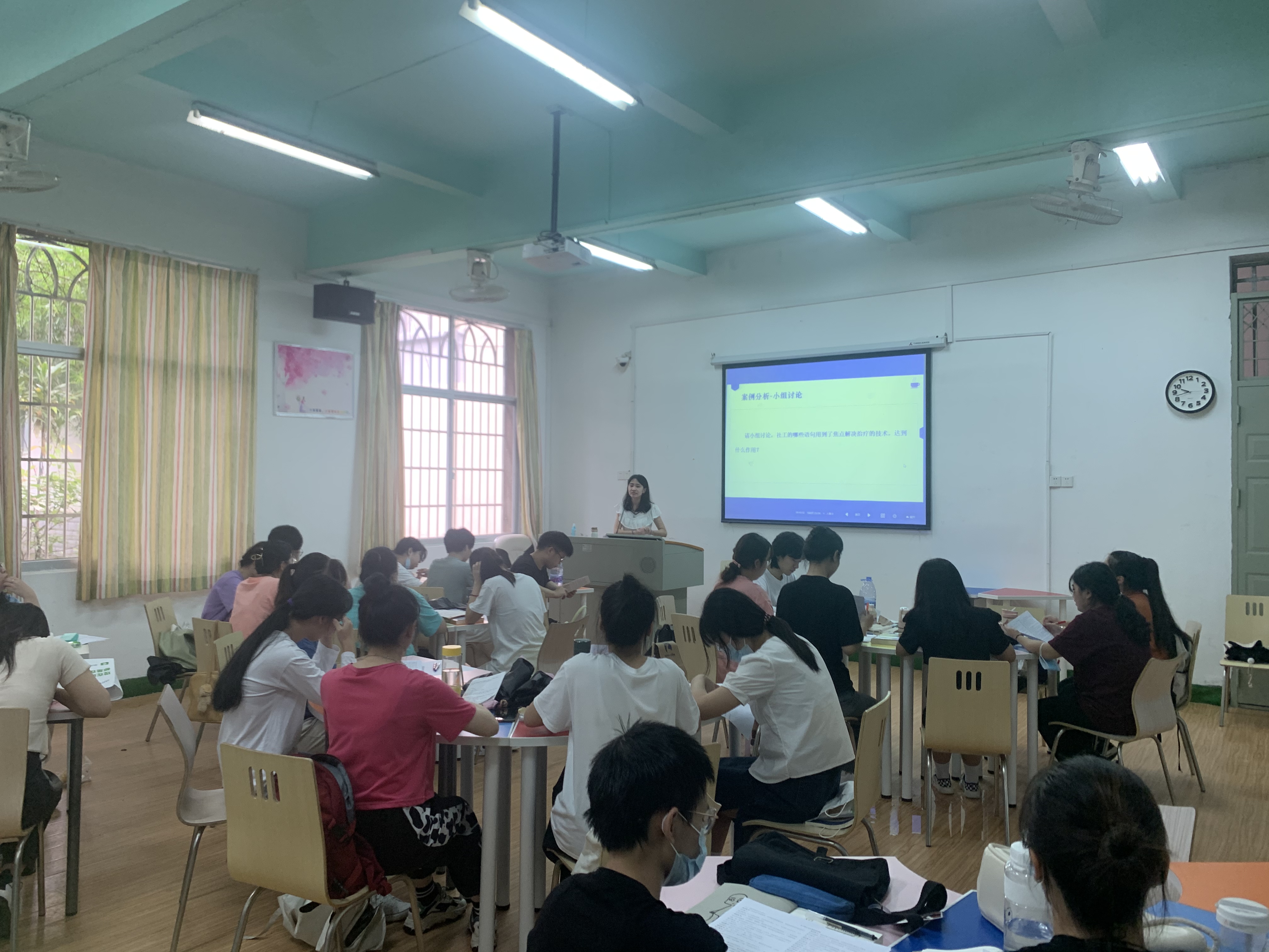 课程训练在案例"不想读书的欣欣"中开启,王婧老师邀请大组梳理案例文字稿,并对社工的咨询语言进行分析与研讨,进而了解焦点咨询技术在真实案例中的应用。随后,小组通过角色扮演"社工与小星"的故事,分别感受以问题为导向与以焦点为导向的咨询方法带来的不同体验,强化焦点解决治疗核心技巧的使用。