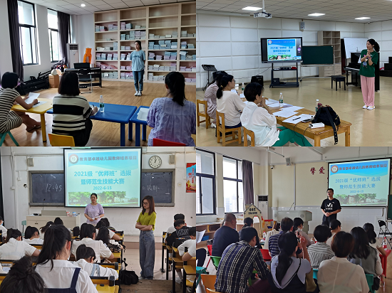为继续深化教育部"卓越幼儿园教师培养改革项目"实施,创新我校幼儿教师培养机制,支持学前教育专业学生综合素质提升,学前教育学院于2022年6月中旬举办为期半个月的2021级"优师班"选拔暨师范生教学技能大赛。学前教育学院副院长肖英娥、林萍等专业老师共21名担任评委对学生进行了分组面试。
