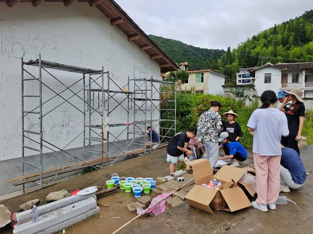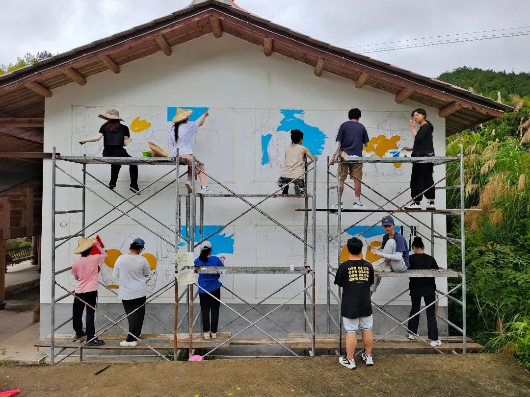 福建幼儿师范高等专科学校艺术教育学院师生用巧手匠心点缀大铭街道的白墙灰瓦,用所知所学展现"美丽大铭"。