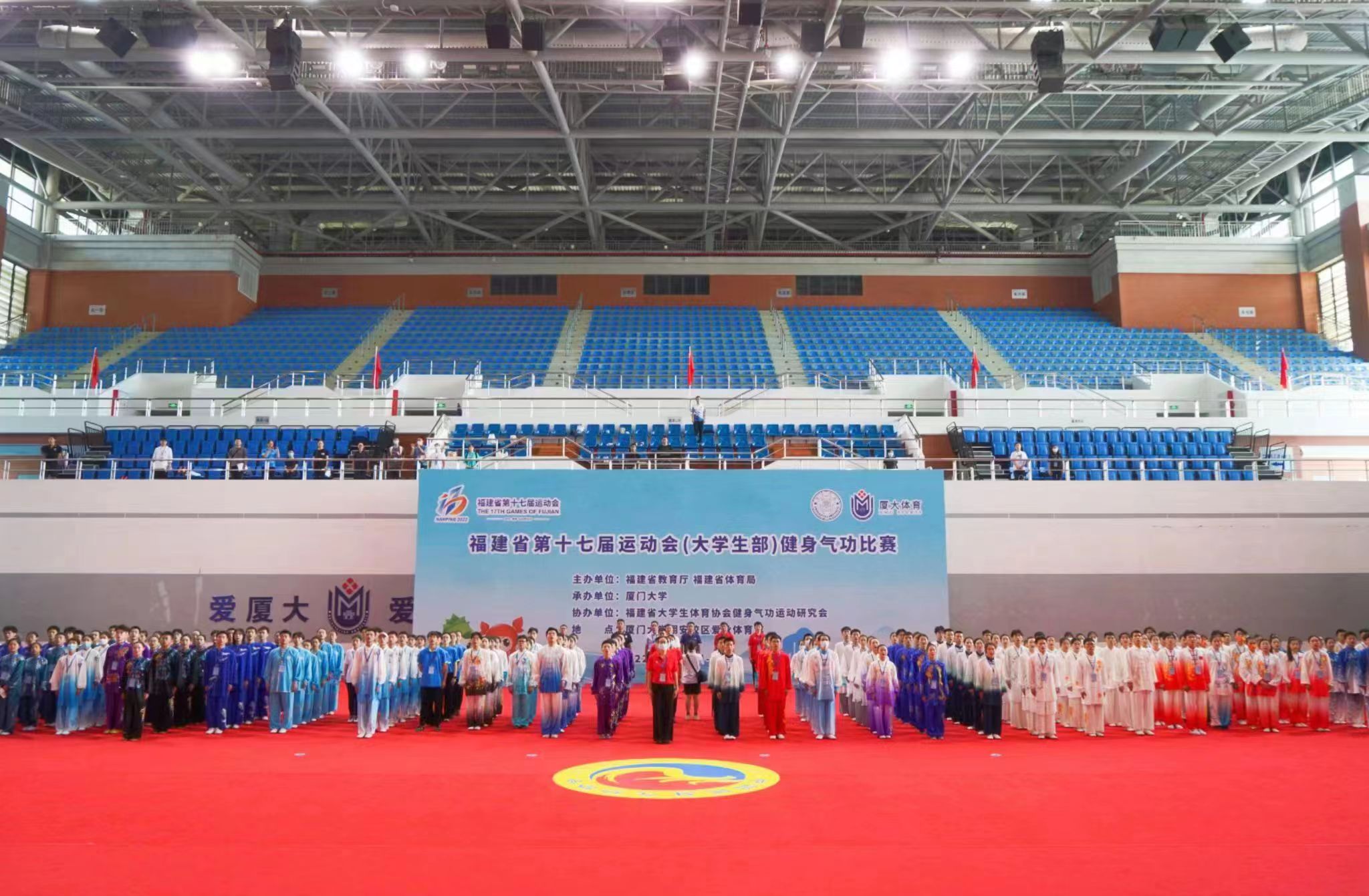 该项目于7月16-18日在厦门大学翔安校区举行,来自全省多所高校共33支队伍参赛。比赛设个人项目4项和集体项目4项,我校派出郑炜楠(学前教育学院)、曾国滨(人文科学学院)、肖明英(学前教育学院)、罗杨(艺术教育学院)、温莉莉(艺术教育学院)、张晓璐(艺术教育学院)等6名学生参加个人与集体项目比赛。经过激烈的角逐,最终我校比赛队获得集体项目易筋经第五名,集体项目八段锦第六名。