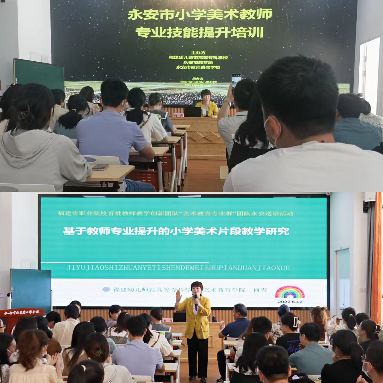 此次落地送培面向永安市全体中小学音乐、美术教师。两位主讲教师何青、陈语,来自于福建省职业院校首批教师教学创新团队--福建幼高专"艺术教育专业群"团队。