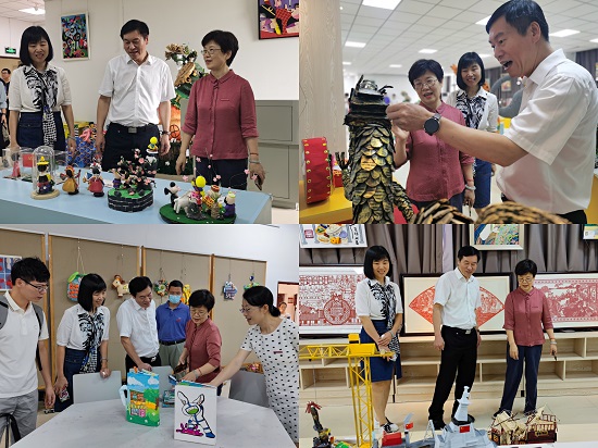 督导组实地查看了学前学院综合楼实训中心,重点了解我院疫情防控常态化下教学实训工作准备、实训室安全与环境卫生等相关工作,督导组对我院教学实训开学准备工作给予充分肯定。在调研指导过程中,实训室展出的绘画、纸艺、陶艺、布艺、沙艺等学生手工作品给督导组留下深刻印象,认为作品充分展现了学生良好的专业素养以及对中华优秀传统文化的传承与创新能力。