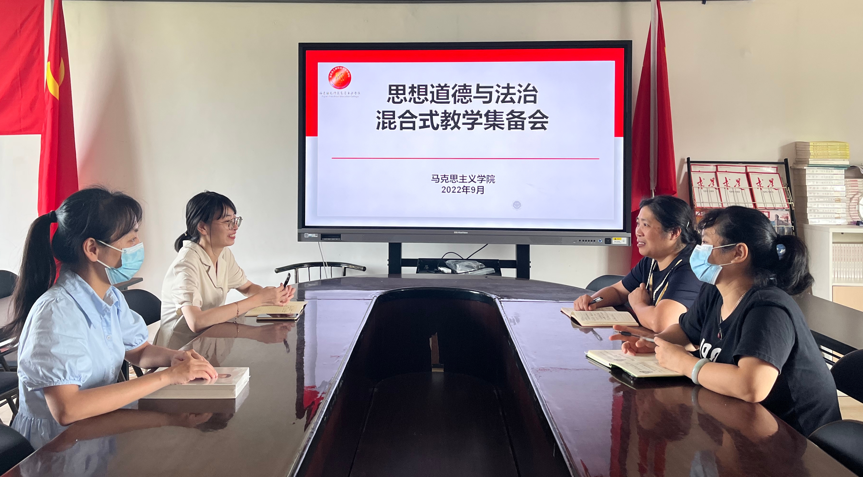 为了切实推进课程教学与信息资源深度融合,提升《思想道德与法治》课程的吸引力、感召力和实效性,增强大学生对思想政治理论课的满意度和获得感,马克思主义学院"思想道德与法治"教研室于2022年9月9日下午在院办601教研室组织开展了《思想道德与法治》课程混合式教学集备会。