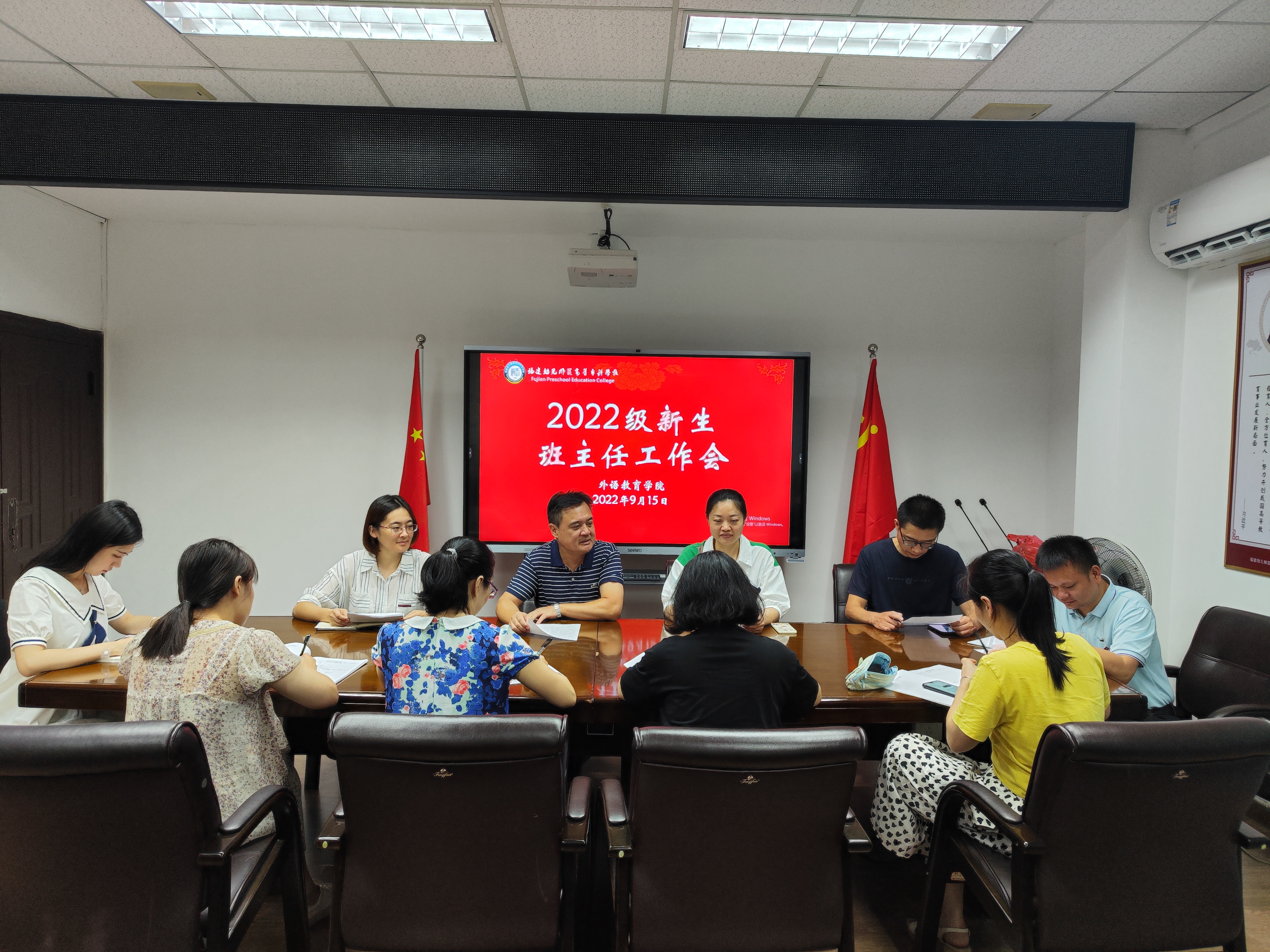 2022级新生报到在即,为进一步加强班主任队伍建设,明确岗位职责,更好开展新生思想教育工作,外语教育学院于2022年9月15日上午召开2022级新生班主任工作会议。院党总支书记林祥昊、副院长(主持工作)陈文华教授、副院长叶一青、学生管理科科长何莹、2022级全体新生班主任及辅导员参加会议。