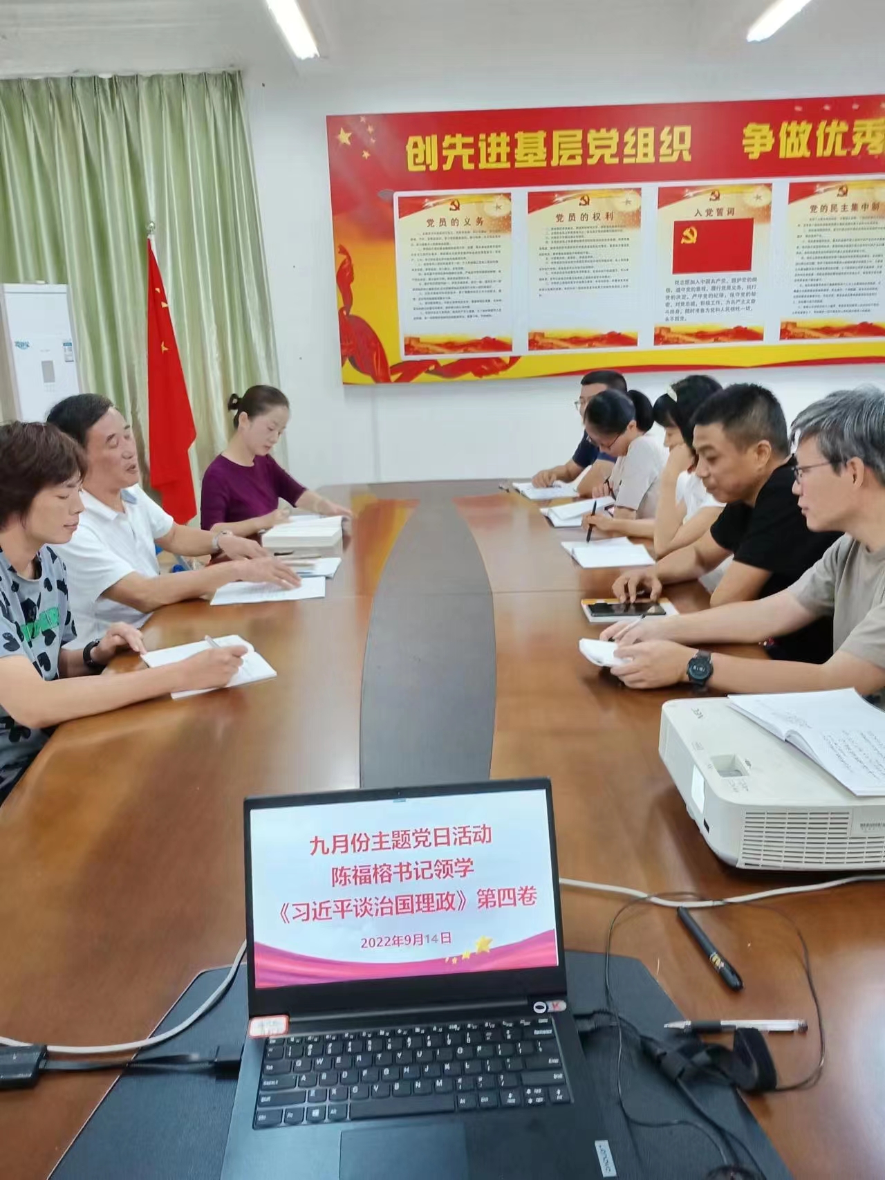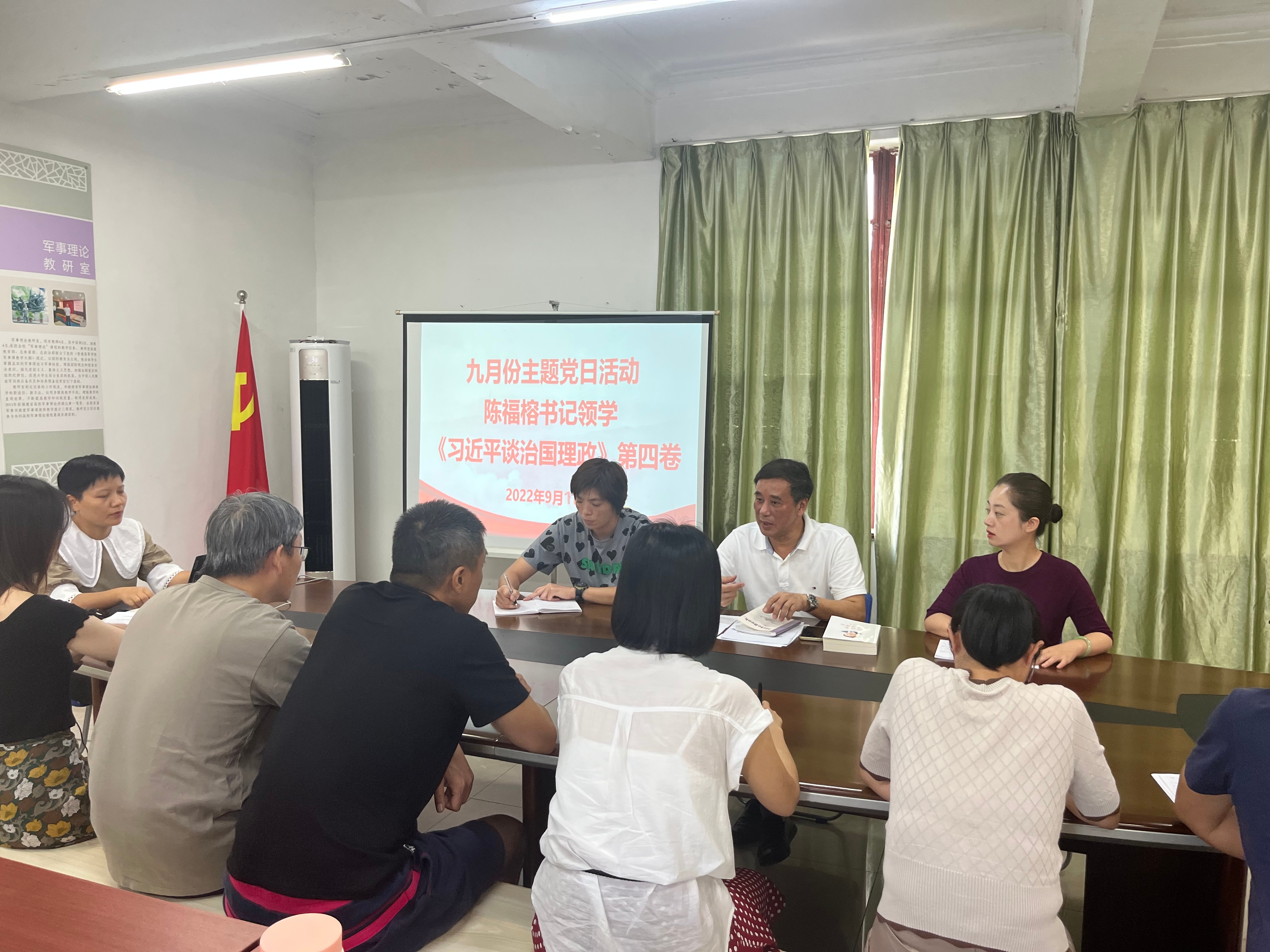 2022年9月14日下午,通识教育学院党支部在系部楼506会议室开展9月份主题党日活动,专题学习《习近平谈治国理政》第四卷。会议由陈福榕书记主持,学院全体党员参加。