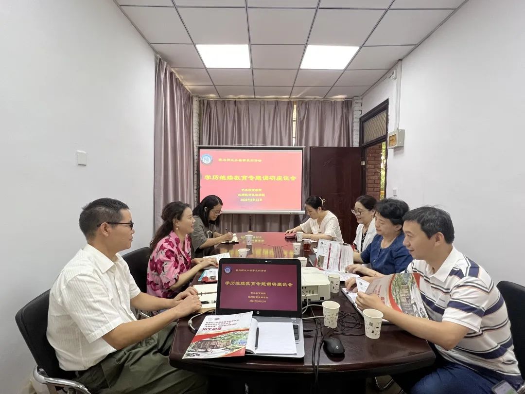 为积极贯彻落实教育部关于《教育部关于推进新时代普通高等学校学历继续教育改革的实施意见》精神,积极提升学生学历,9月15日上午,教育发展学院院长薛少红、继续教育部主任陈则飞、沈艳容老师赴艺术教育学院开展学历继续教育专题调研座谈会,艺术教育学院院长王萍萍、党总支书记姜琪,副院长颜艳、学生管理科科长章涛参加会议。本次活动为艺术教育学院携同教师教育发展学院共同开展的"我为师生办实事"系列活动之一。