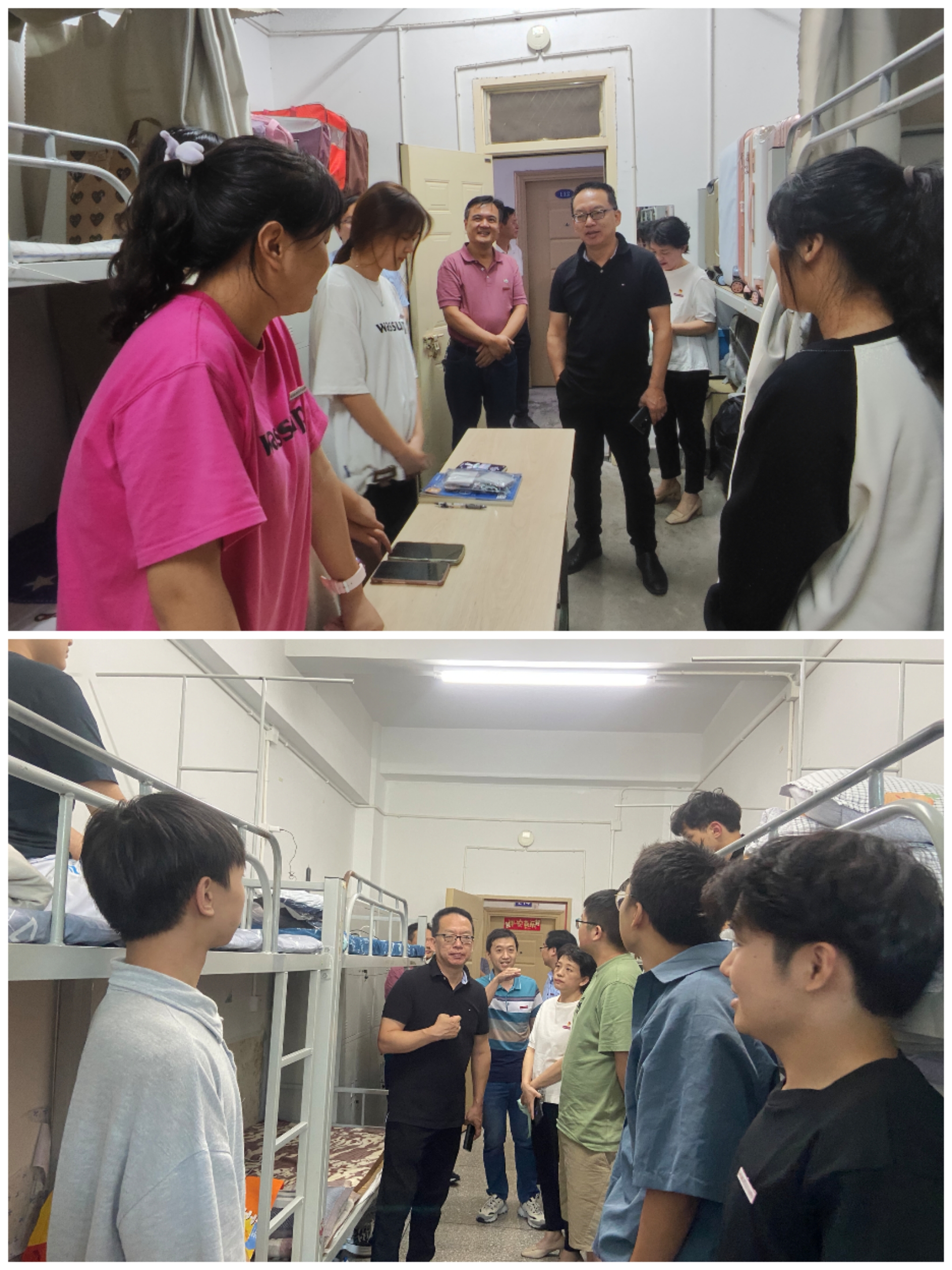邹书记一行先后来到校区学生宿舍、餐厅、快递收发处、医学观察室等处查看了解情况。在学生宿舍,邹书记亲切看望两个学院的2022级新生,勉励他们把握好大学时光,养成良好的学习和生活习惯,鼓励同学们早日做好职业生涯规划,为理想目标努力奋斗。在食堂,邹书记详细了解了原材料采购情况、饭菜品种、餐具消毒、环境卫生管理等情况,并要求加强日常监管工作,稳定价格,根据师生需求,优化服务方式,丰富品种。邹书记还对快递收发处、医学观察室使用和管理提出指导意见。
