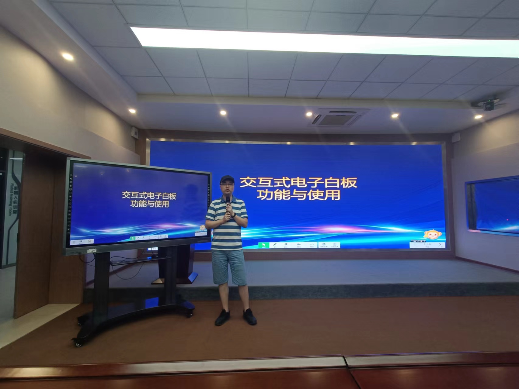 9月29日晚,由实践教研室主办的"交互式电子白板功能与使用"专题讲座在我院VR工程中心演播厅开展,本次讲座由现代教育技术教研室主任陈怀宇老师主讲,陈老师从多个角度入手,深入浅出地进行讲解,他详细介绍了电子白板的主要种类,对比了鸿合、海康、长虹和希沃几个主流的产品,对这些产品的异同点进行了详细的分析,然后重点讲解了希沃电子白板的触控原理、机身结构、软件界面布局等,通过模板化的课件制作案例,带领同学们快速上手,在互动环节,陈老师回答了同学们所提出的问题,同学们纷纷表示,通过本次讲座,对希沃电子白板有了比较详细地认识,掌握了希沃的基本操作,为今后的教育见习实习打下了良好的基础。