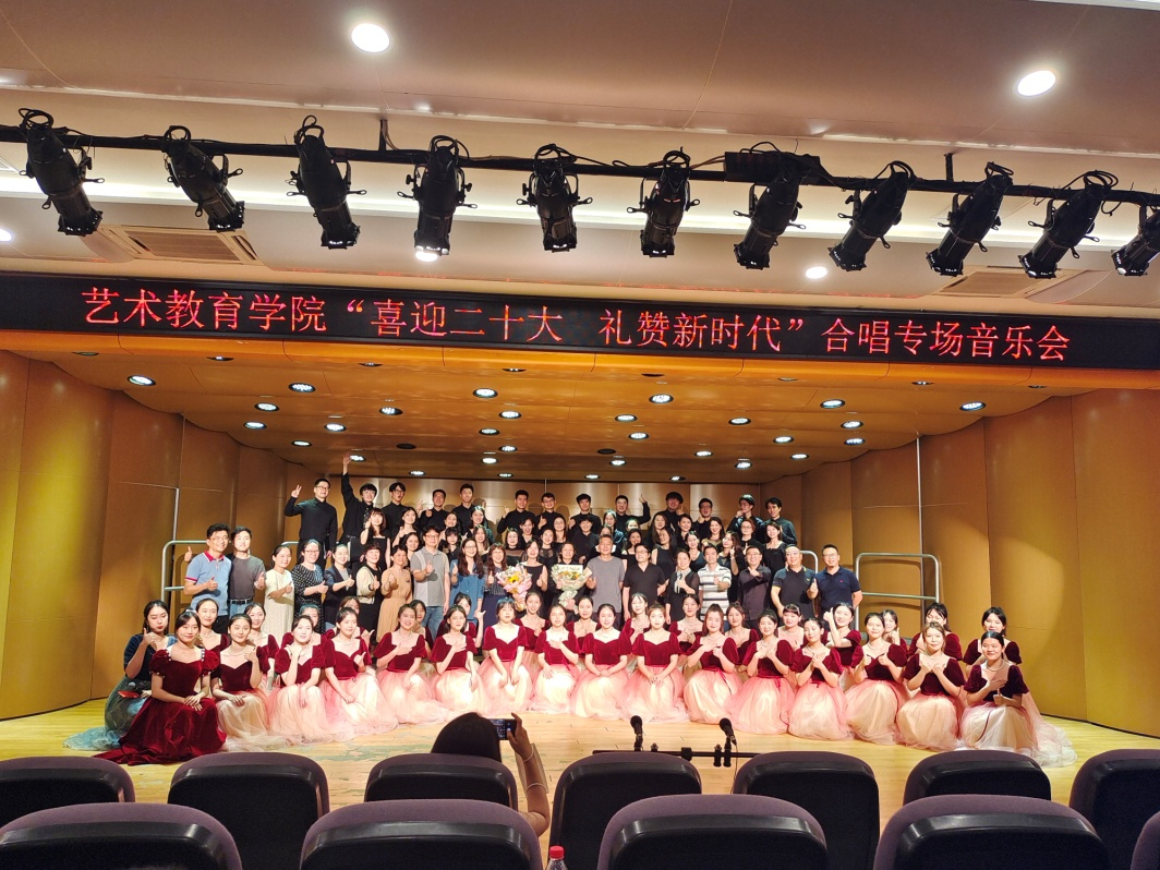 本次音乐会是学校美育与社会美育相融共促的一次良好互动,也是艺术教育学院开展课程思政的一次重要实践,展示出我校师生不忘初心、踔厉奋发的精神风貌。学院坚持"以美润心,以艺润德",活化教育教学资源,引领专业教师在器乐、声乐等课程教学和实践活动中,弘扬中华传统优秀文化,传唱红色经典艺术作品,以多种方式的融合浸润,引导学生自觉传承红色基因,培养德艺双修的高素质艺术人才。