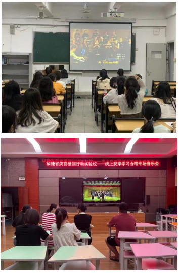 本场音乐会得到了场外众多音乐爱好者们的支持与好评,线上互动达4.5万,其中,我校实施"福建省美育浸润行动"的对口支持县-德化县、松溪县、福安市的老师们也在线上观看直播,实验校德化第二实验小学的全体音乐教师们还集中进行了线上观摩与学习。