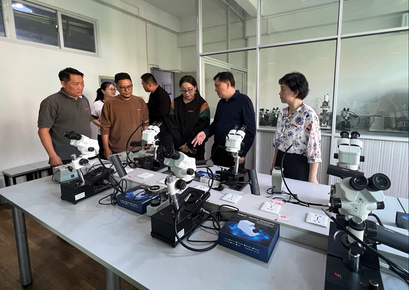 随后,在王萍萍院长等人的陪同下,来宾们参观了艺术教育学院非师专业学生《古村凝彩 邂逅屏南》写生艺术展、首饰制作实训室、宝石琢型实训室、宝石鉴定及钻石分级实训室、珠宝营销室等,就实训室建设及实践教学活动展开了深度交流。
