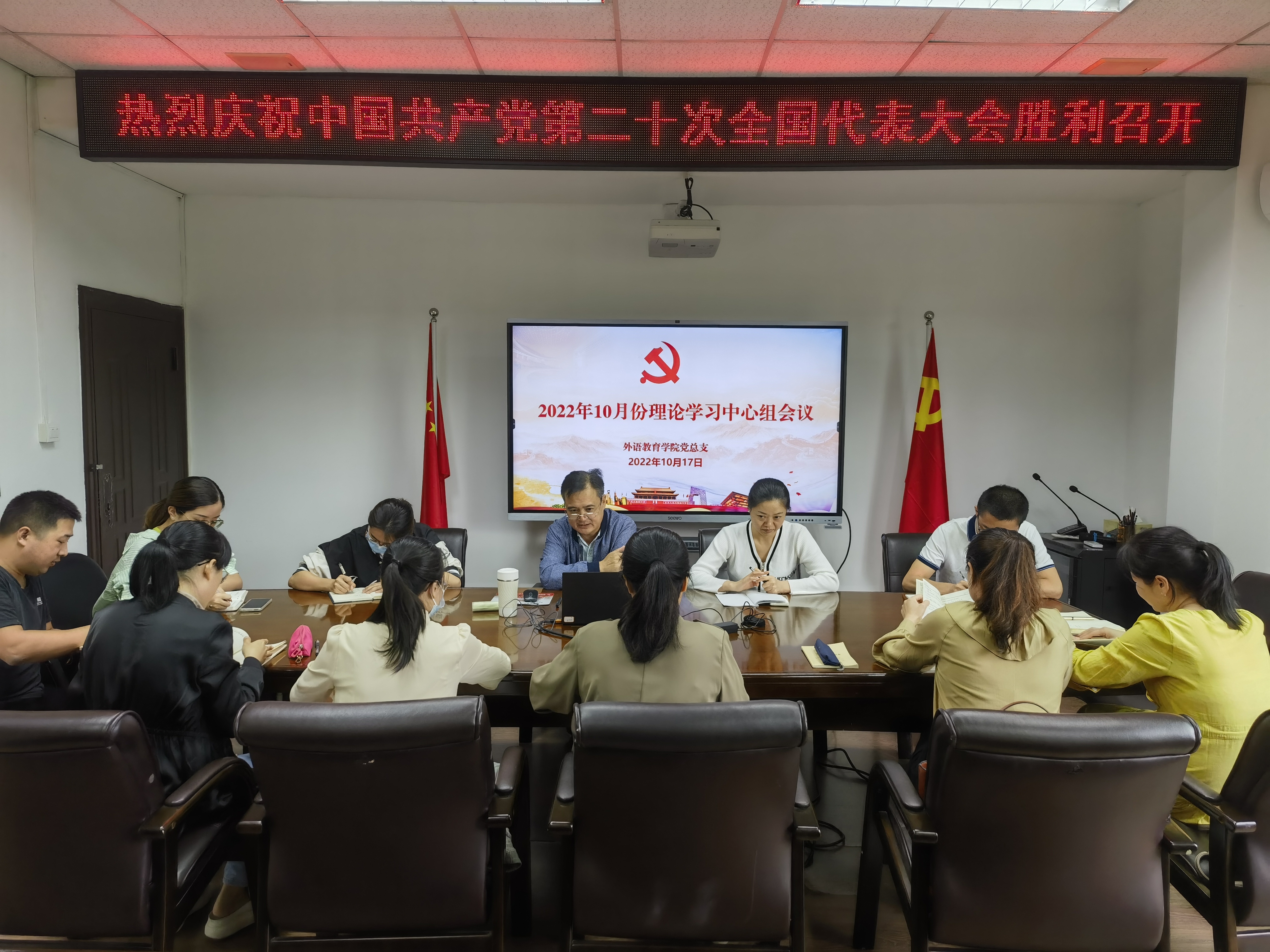 10月17日下午,外语教育学院党总支组织召开理论学习中心组会议,专题学习习近平总书记在党的二十大上的报告精神。