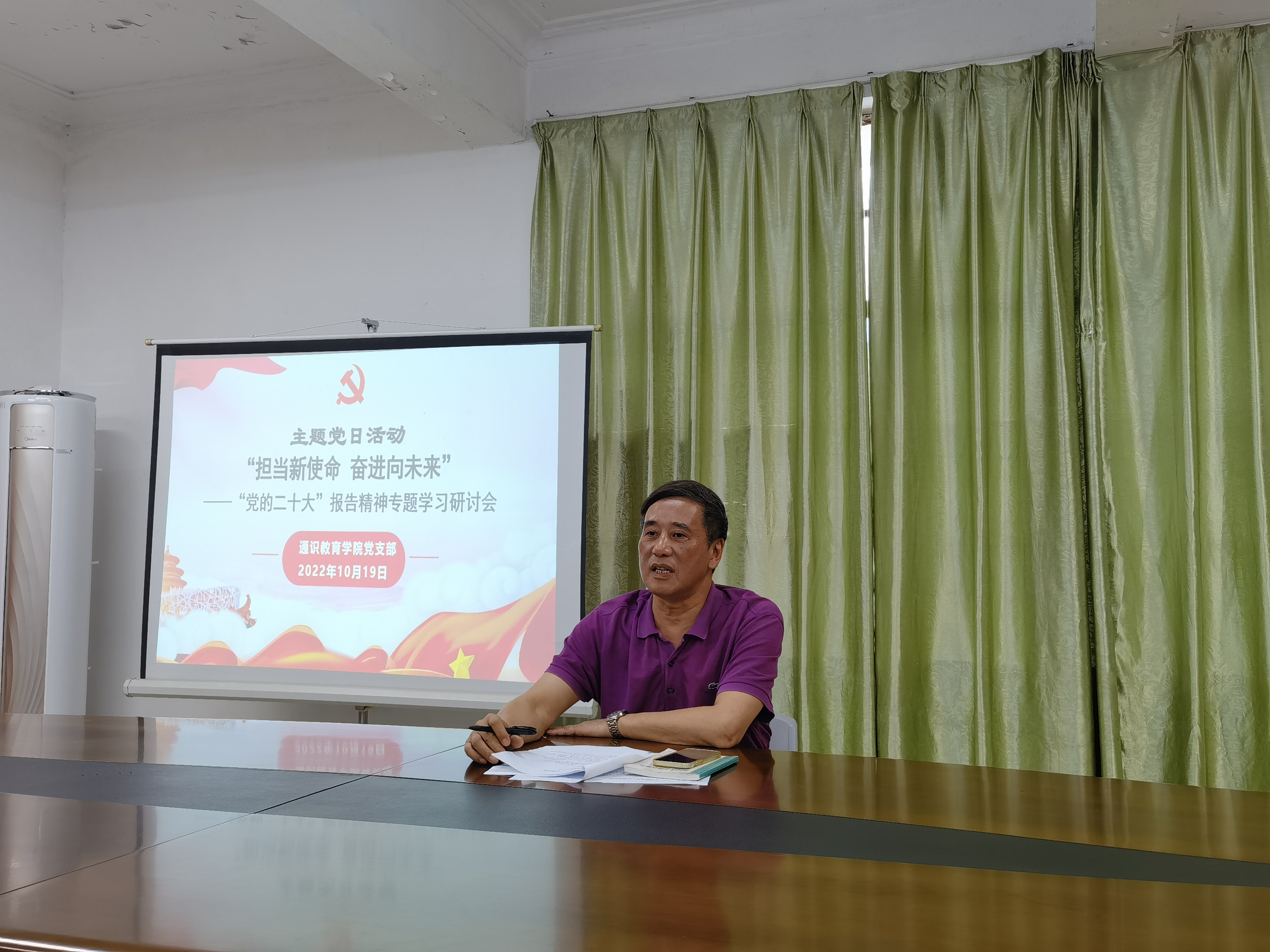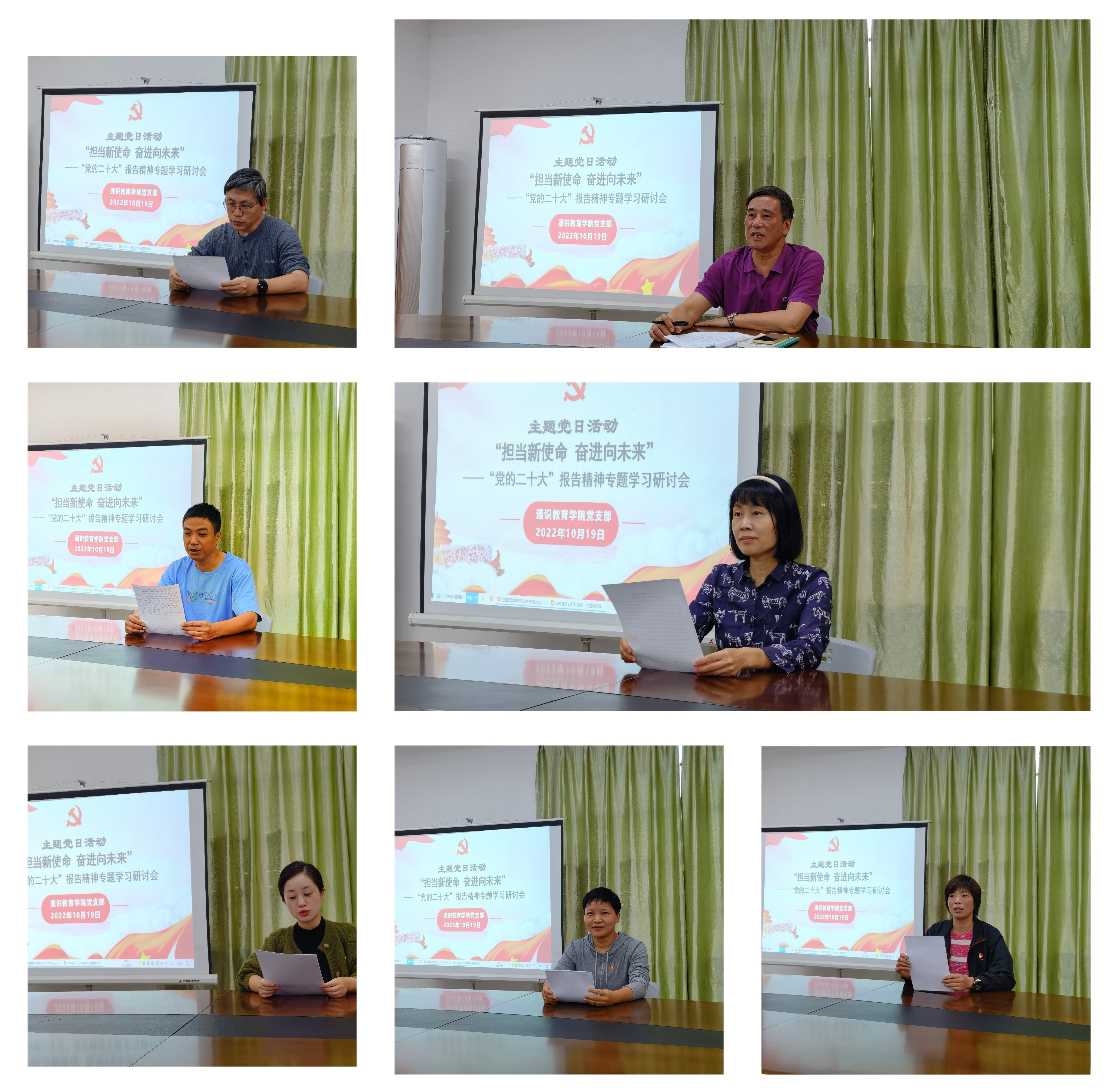 2022年10月19日下午,通识教育学院党支部开展"担当新使命 奋进向未来"主题党日活动,围绕"党的二十大"报告精神进行专题学习研讨。会议由陈福榕书记主持,学院全体教师参加此次活动。